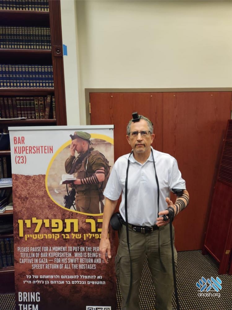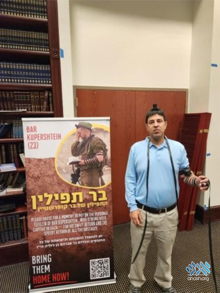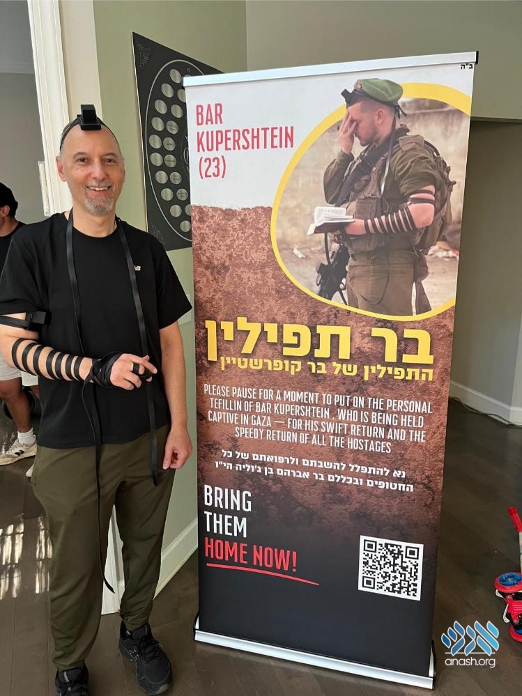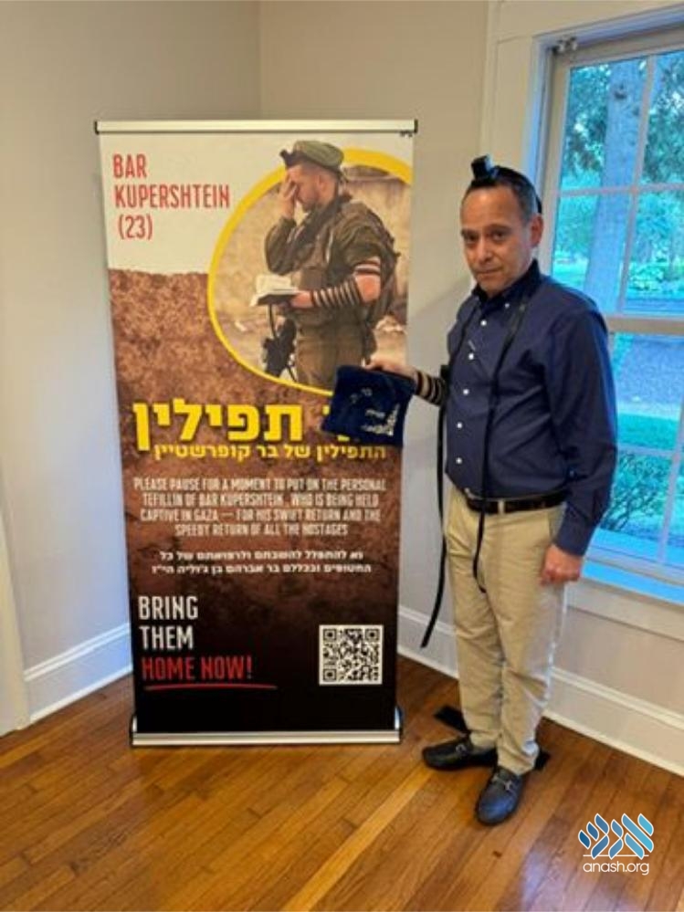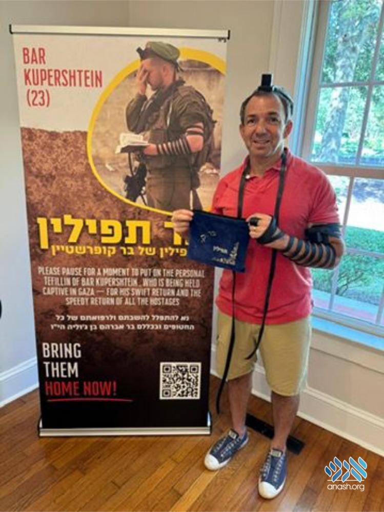 An incredibly moving event took place last week in Atlanta, Georgia, when dozens of men gathered to put on tefillin with the very tefillin of Bar Kuperstein, who is still being held hostage in Gaza.
