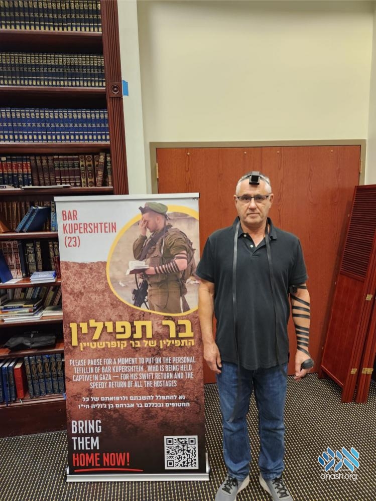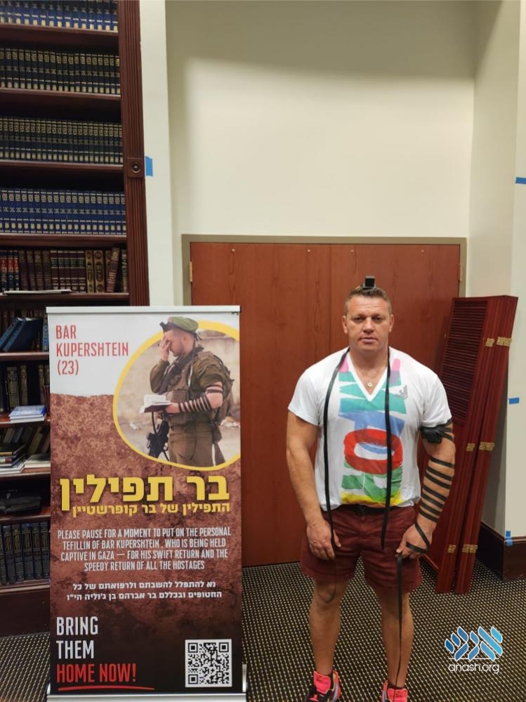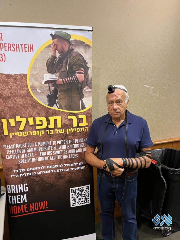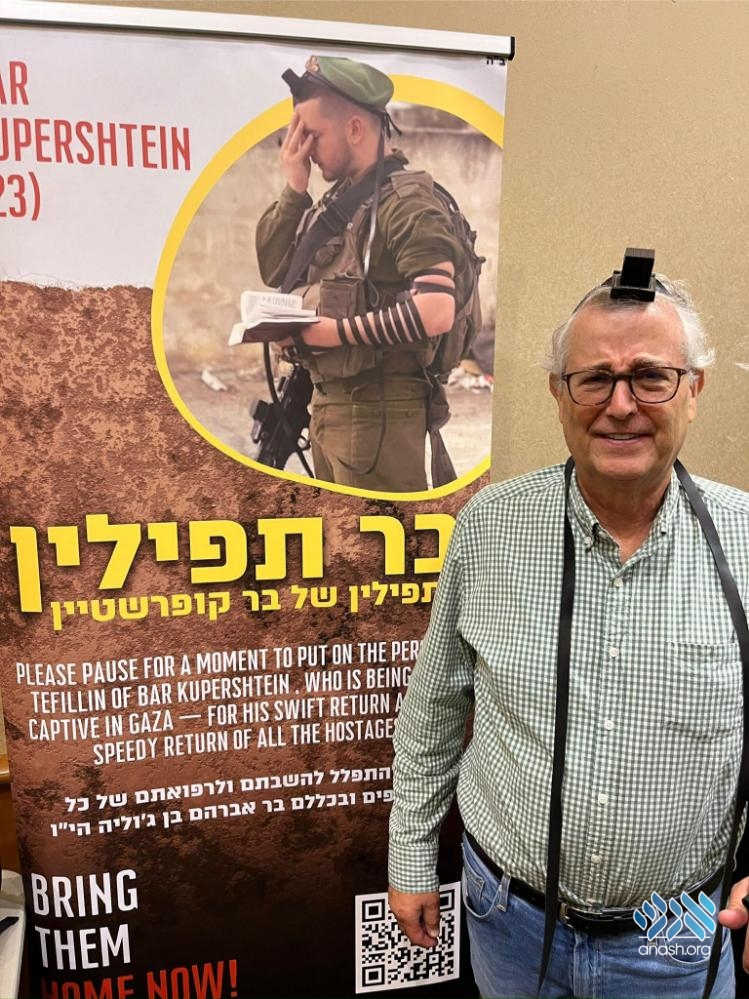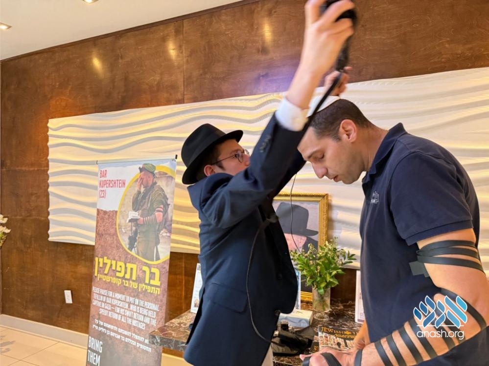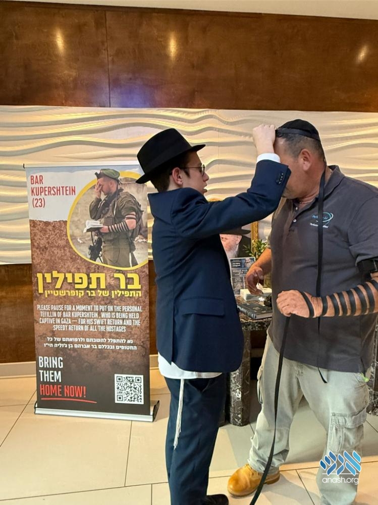 An incredibly moving event took place last week in Atlanta, Georgia, when dozens of men gathered to put on tefillin with the very tefillin of Bar Kuperstein, who is still being held hostage in Gaza.