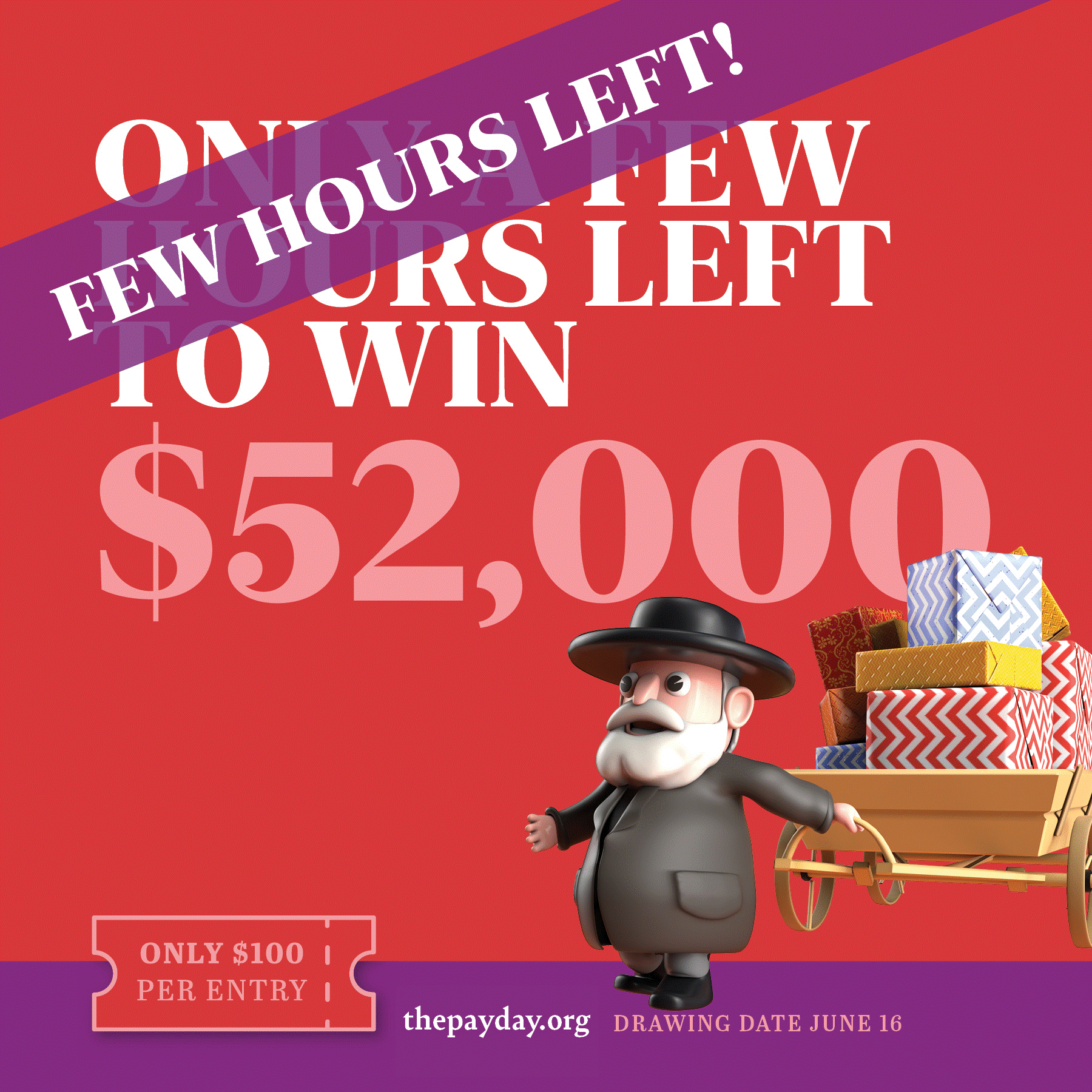 Misaskim’s Payday raffle is coming to a close. There are just a few hours days left to purchase your ticket to have $1000 deposited in your bank account EVERY WEEK for an entire year!