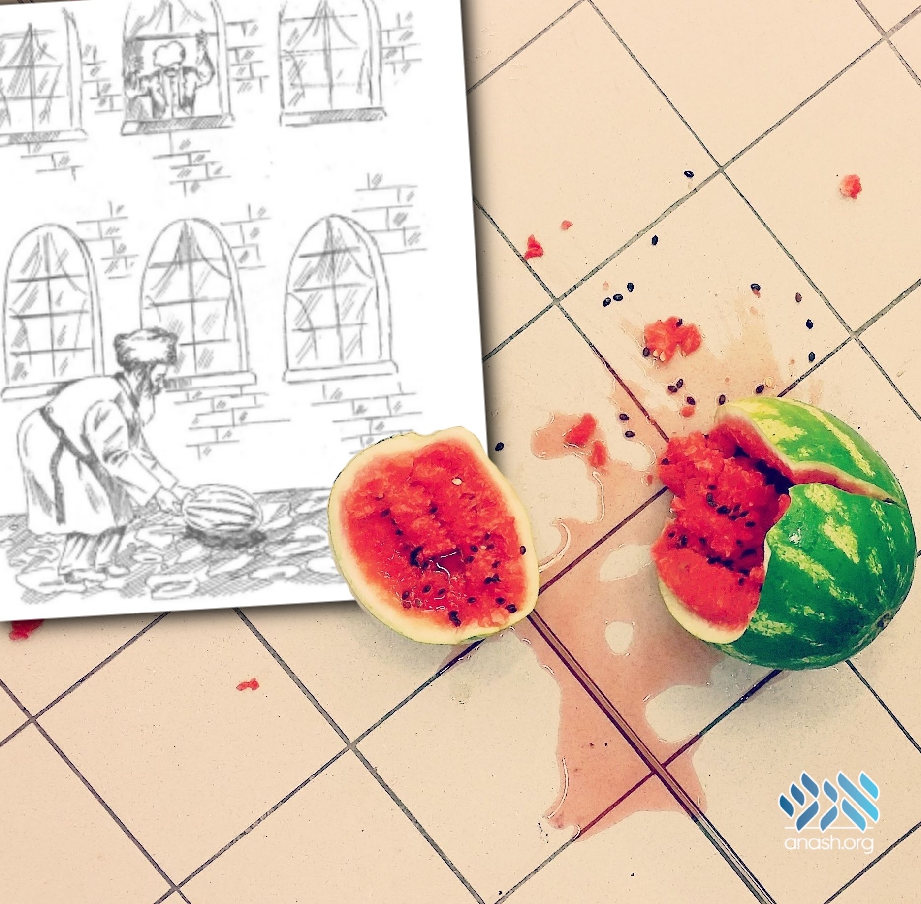 “פתאום ראה שמחלון עליית בית השר נפל אבטיח…פתחו האבטיח”