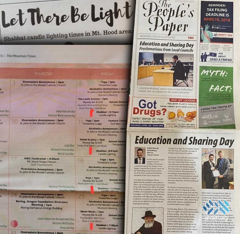 This story continued this month in Gresham, Oregon, when the local shliach Rabbi Avrohom Moshe Dyce decided to publish a similar advertisement in the local Mountain Times monthly newspaper as a paid advertisement.