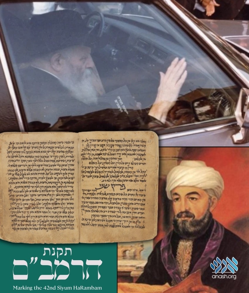 As early as the 1930’s the Rebbe was observed learning Rambam. At the time, the Rebbe and Rebbetzin were living in Berlin and Paris but would make occasional visits to the Frierdiker Rebbe who then resided in Poland. One student studying in Tomchei Temimim at the time recalled that the Rebbe was often seen walking around with a small bag and one of the things the bochurim would see the Rebbe pull out from the bag was a Sefer of the Rambam’s Mishneh Torah.