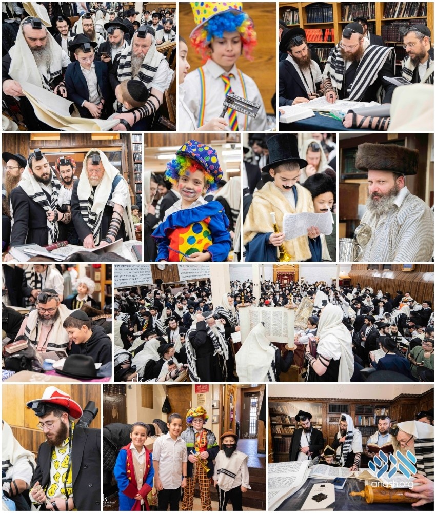 A large crowd joined the morning Megillah reading in 770, with many children joining in colorful and creative costumes.