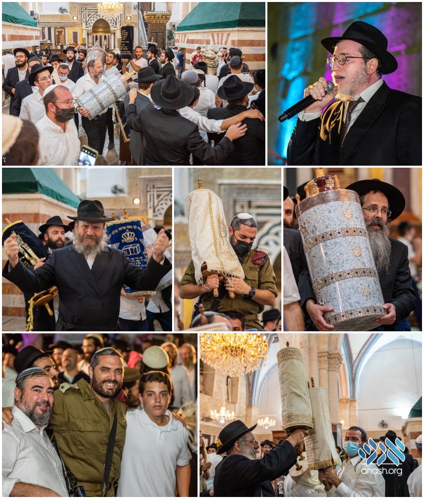 Hundreds joined the annual Hakofos Shniyos celebration held at Mearas Hamachpela, arranged by the Shluchim in Chevron. Many used the rare opportunity to enter Kever Yitzchak where they danced with the Torah.