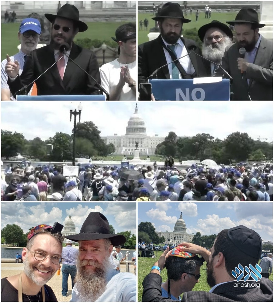 Two shluchim were among the speakers at a rally against anti-semitism was in front on Capital Hill on Sunday, and other shluchim circulated among the crowd, offering them a chance to put on tefillin.