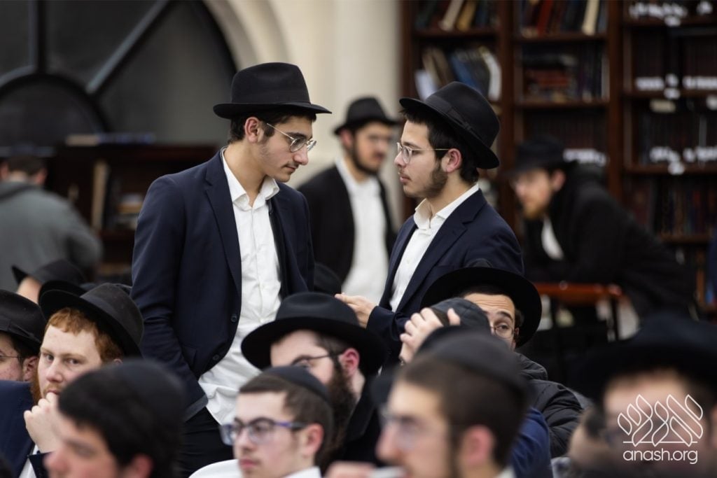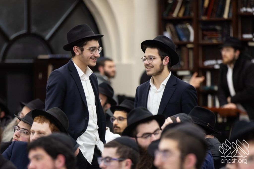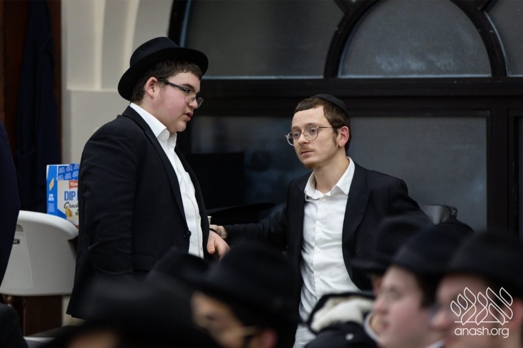 Concluding a full day of meaningful Yud Shevat programming, the Vaad Talmidei Hatmimim organized a central farbrengen for bochurim on Wednesday night at the Oholei Torah.