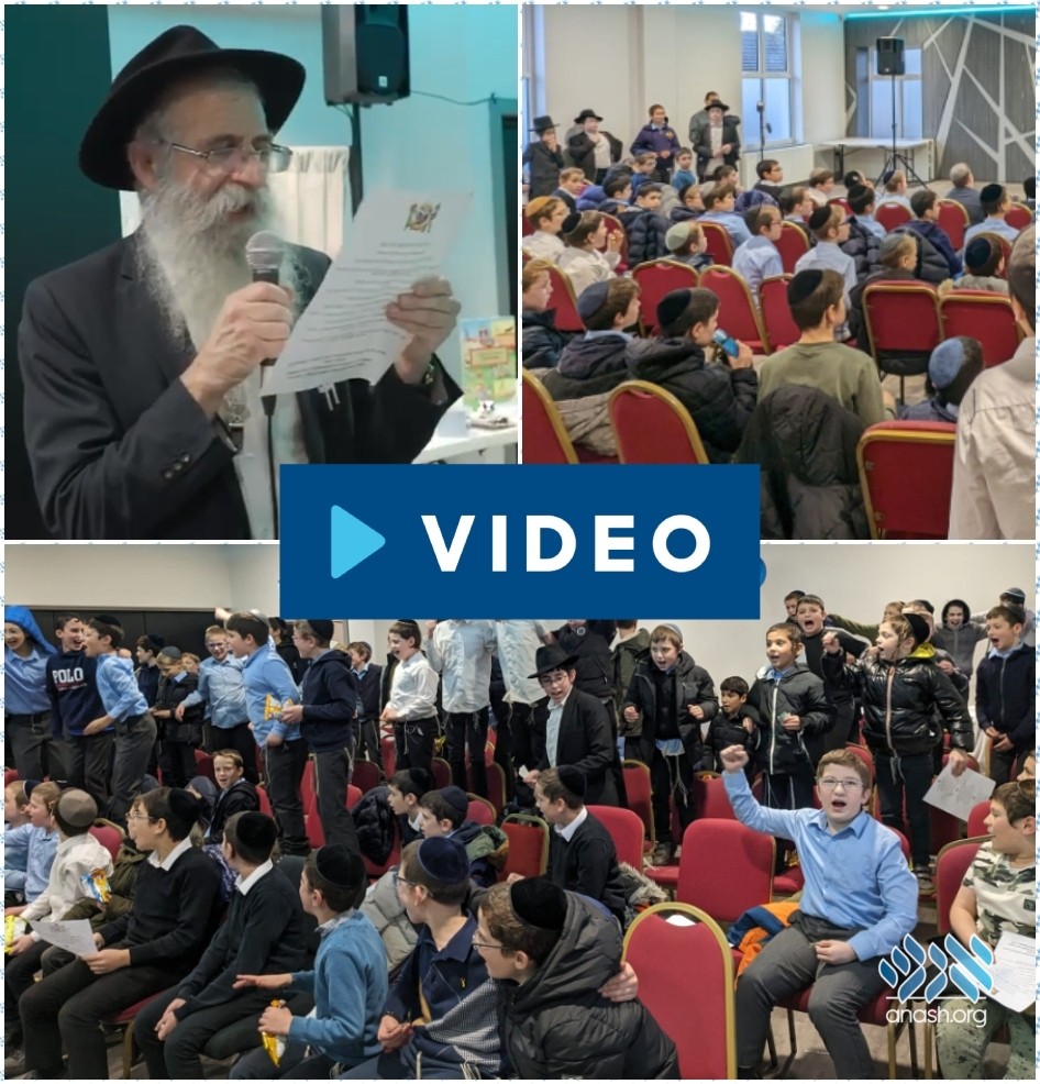 Over 250 children gathered in Lubavitch House Manchester for a grand rally for Eretz Yisroel hosted by Rabbi Avrohom Jaffe.