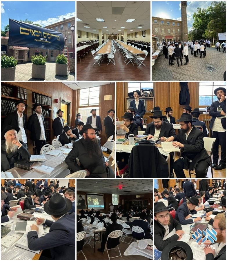 Hundreds of Bochurim from five different Zals gathered in Morristown, NJ, for a special Shabbos Hachana in preparation for the 30th Gimmel Tammuz, where they davened, learned and farbrenged together.