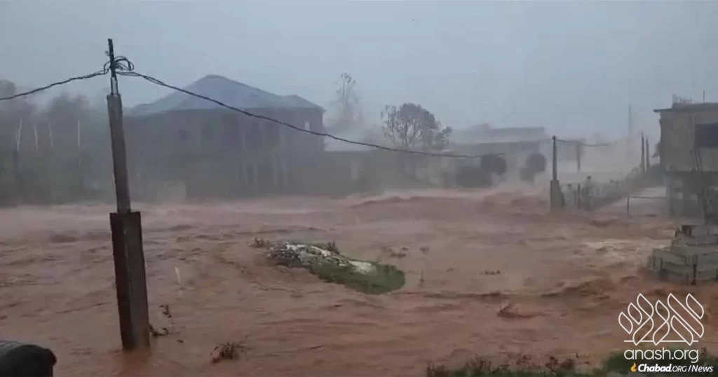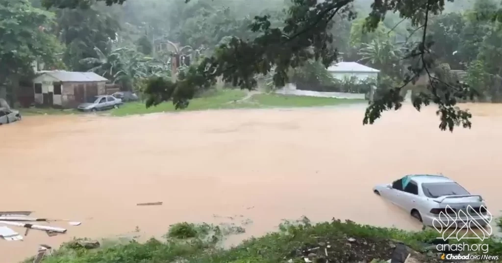 Hurricane Melissa made a direct hit to Jamaica on Tuesday afternoon, October 28, bringing record-breaking 185 mph winds, over 40 inches of rain, and storm surges that caused massive destruction throughout the Caribbean island. Melissa rapidly escalated from a tropical storm into a hurricane and then into a catastrophic Category 5 before inhabitants and visitors had a chance to flee. Amongst them were the island’s Chabad-Lubavitch emissaries, Rabbi Yaakov and Chaya Raskin and their children, who are based in Montego Bay.