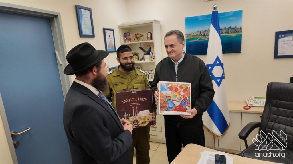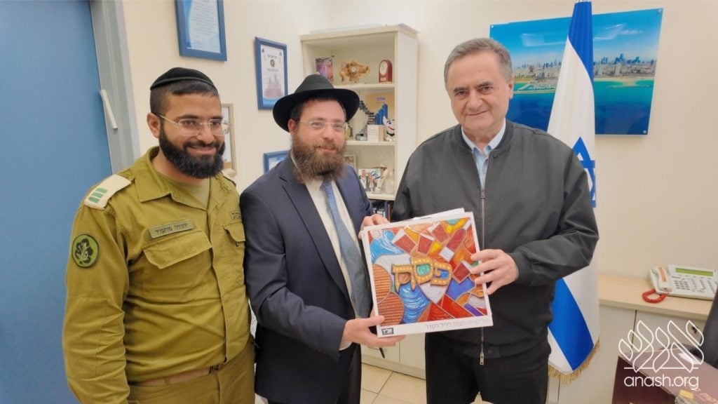On erev Pesach, Rabbi Menachem Ofen, the Rebbe’s shliach to the IDF and security forces, together with military rabbi Rabbi Yehuda Machpud, met with Israel’s Minister of Defense, Yisrael Katz.