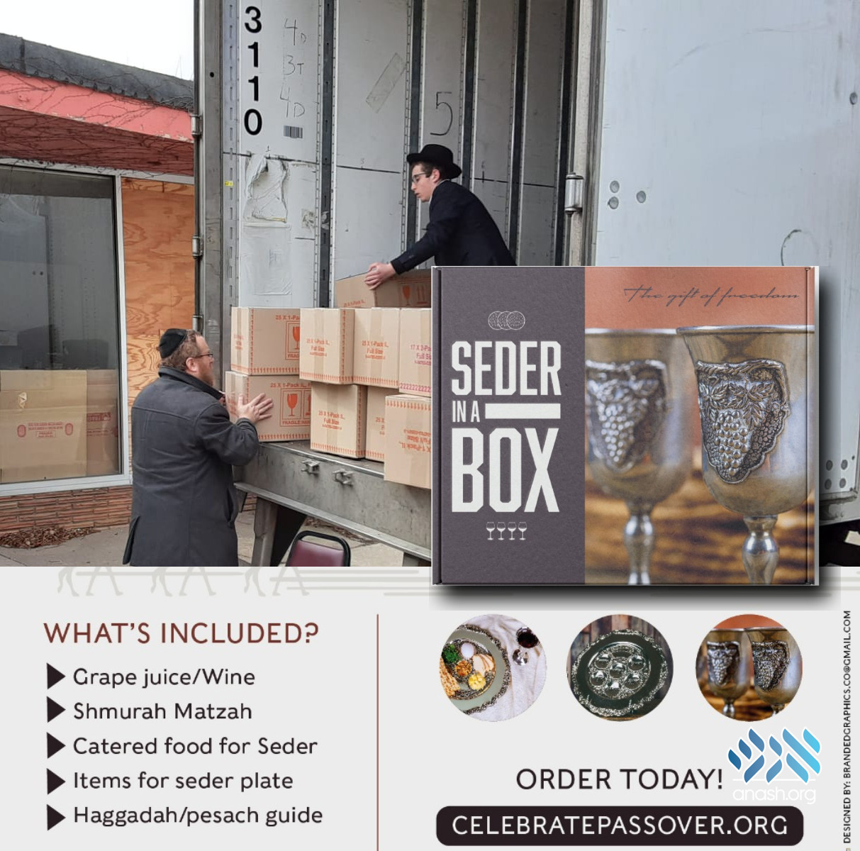 Lubavitch Chabad’s 50 centers have historically offered communal Seder accommodations. For this year, they developed ‘Seder in a Box’. The package includes hand-made Shmura Matzo, ceremonial Seder plate foods, Hagada texts, Pesach guides and Kosher L’Pesach foods.