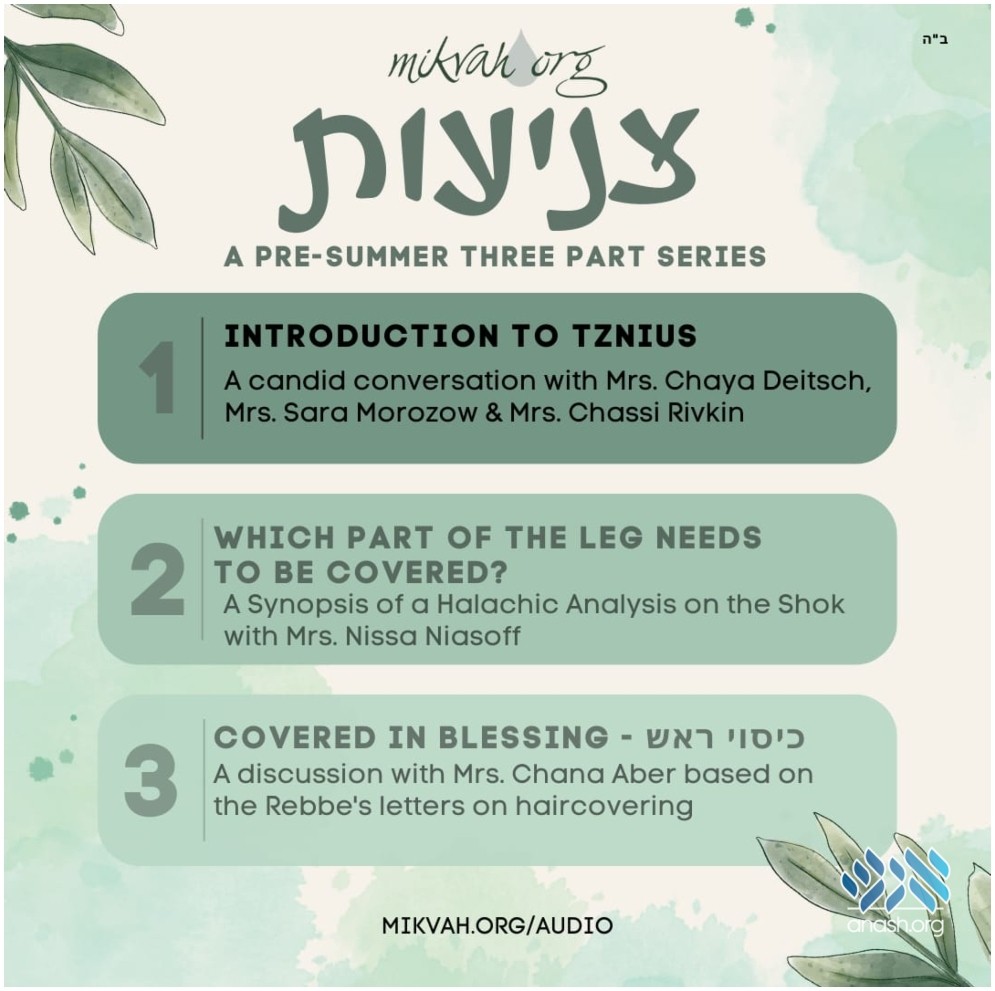 Mikvah.og is excited to announce that their new Tznius Podcast Series has just launched its first episode featuring a candid conversation on Tznius with Mrs. Chaya Deitsch, Mrs. Sara Morozow and Mrs. Chassi Rivkin.
