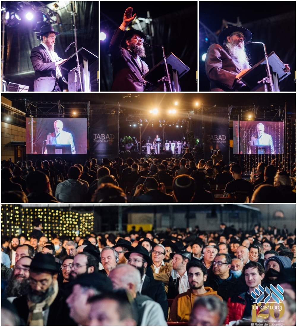 On Monday night, in Buenos Aires, Argentina, 3,000 people attended an emotional event in honor of the Rebbe’s 120th birthday, with a focus on strengthening the path forged by the Rebbe with concrete action.