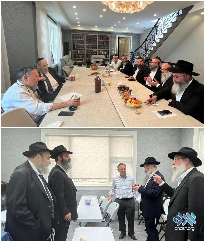 The meeting was held at the home of Rabbi Moshe Kotlarsky, vice chairman of Merkos L’inyonei Chinuch, and was joined by philanthropist George Rohr, one of the largest supporters of Chabad organizations in Ukraine for the past 32 years.