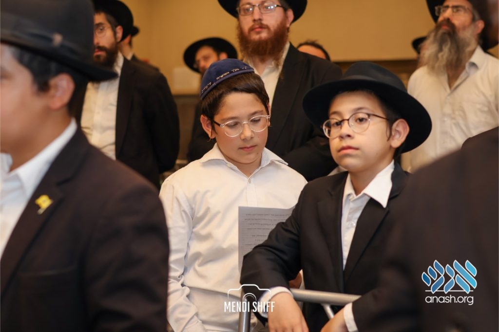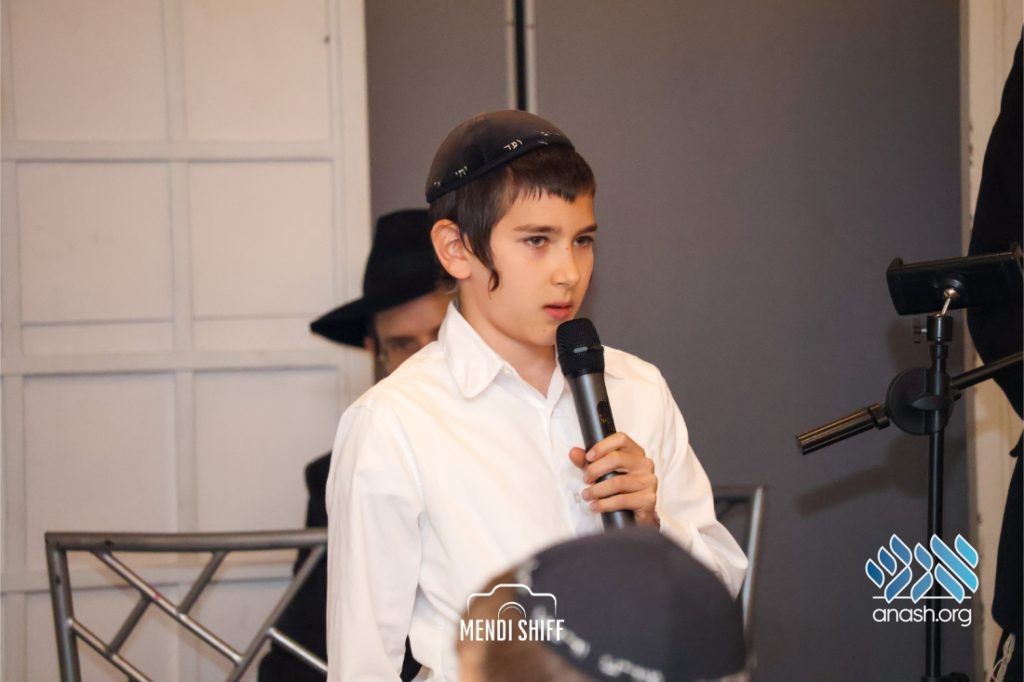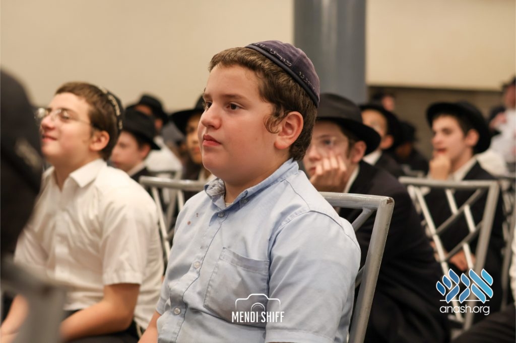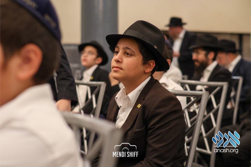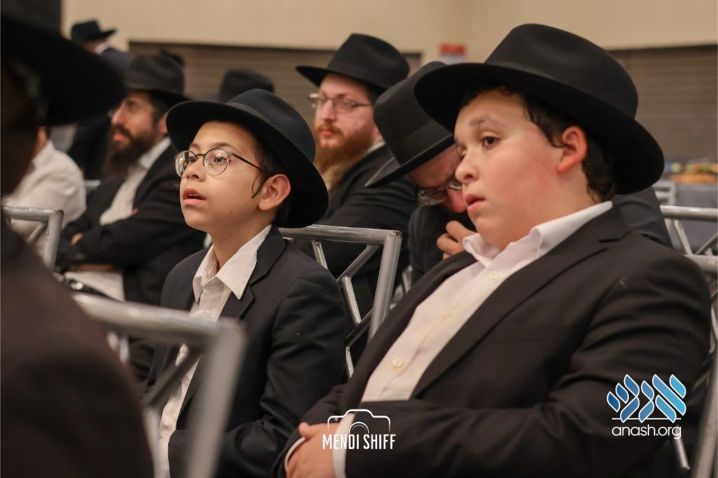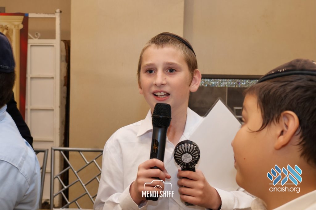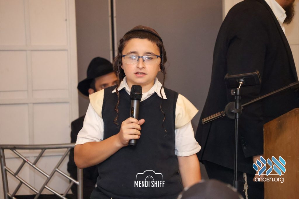 Kita Zayen then took center stage with a spirited presentation. First, they all made a siyum on Masseches Tomid as per the Rebbe’s request, led by their mechanchim Rabbi Yisroel Greenberg and Rabbi Chanoch Hecht. They also gave all a taste of the Kita Zayen experience as they sang a chassidishe niggun together.