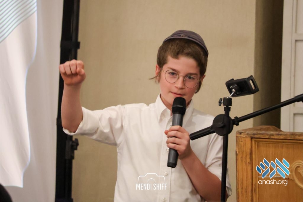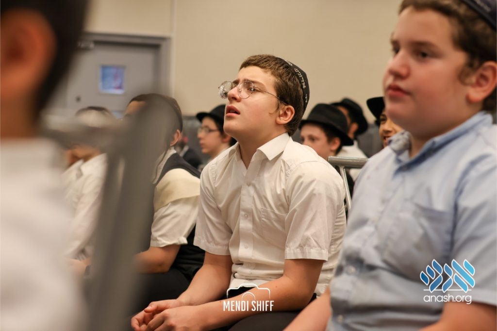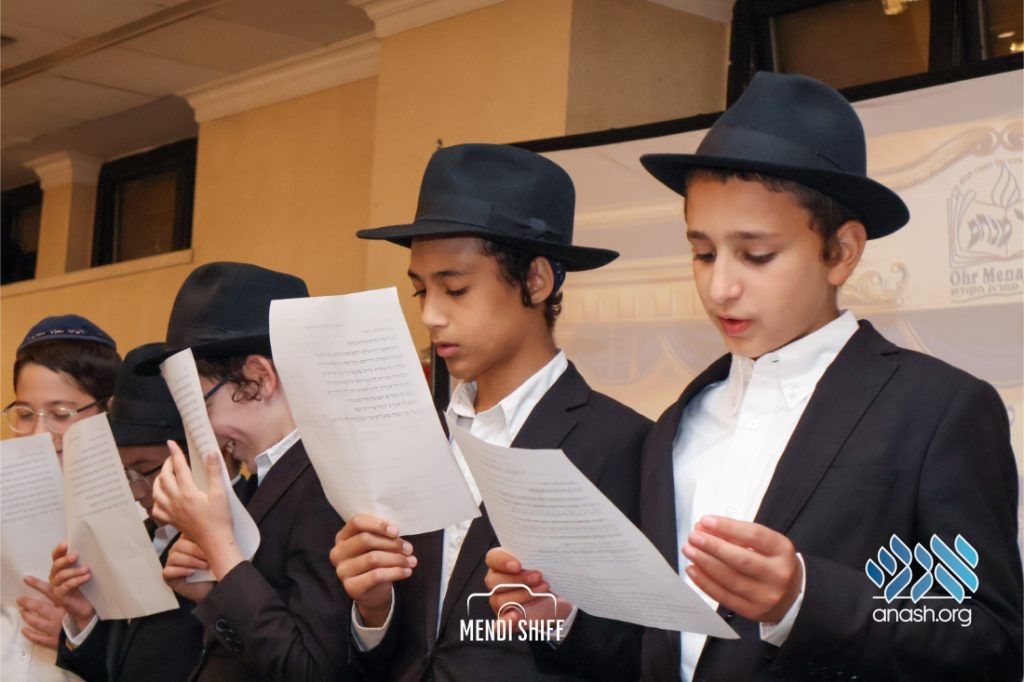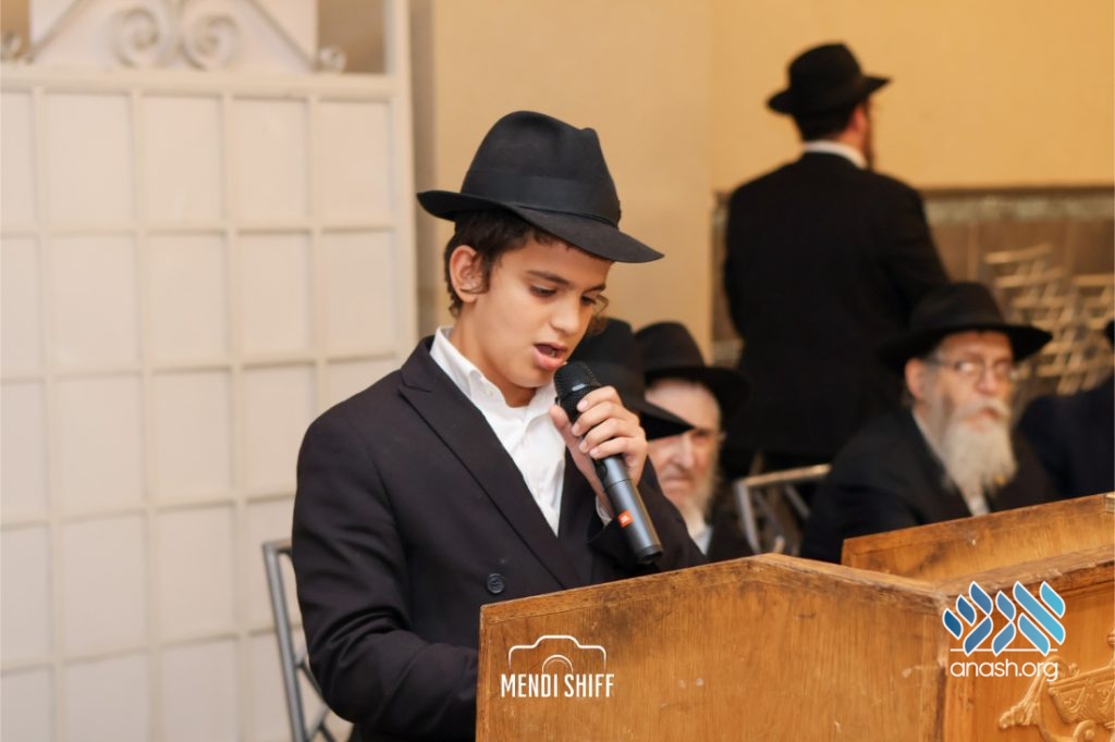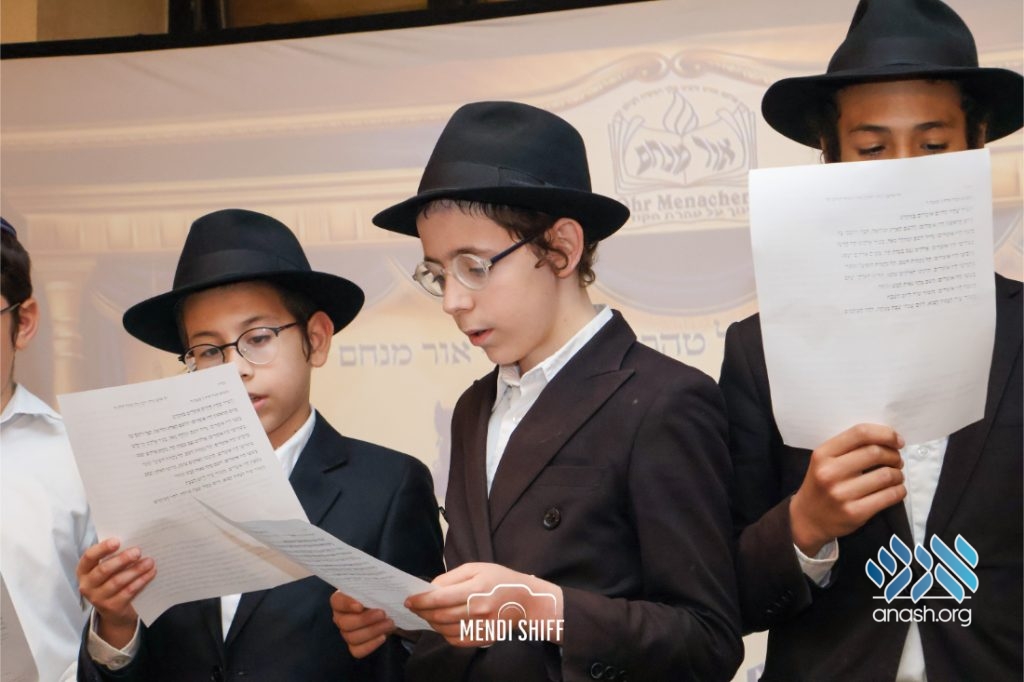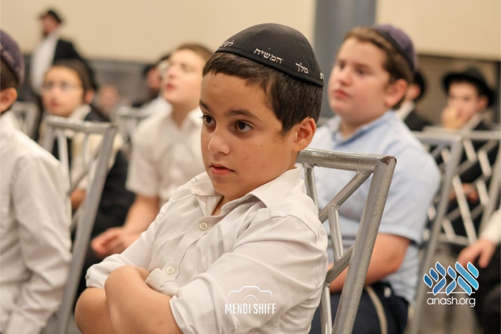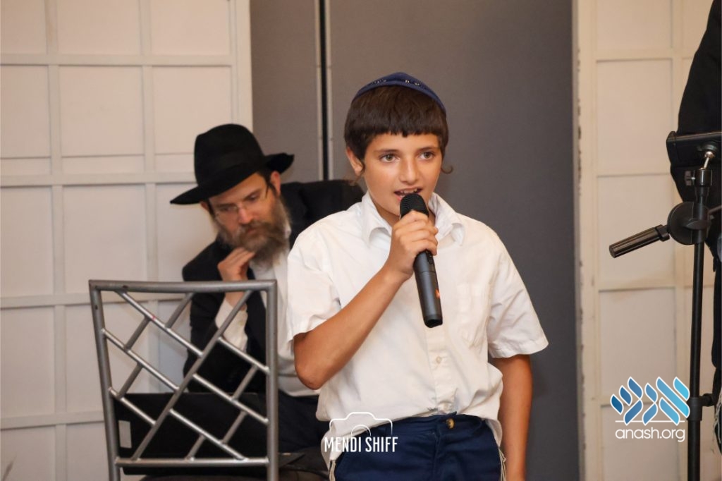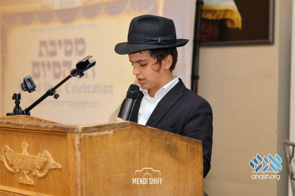 Kita Zayen then took center stage with a spirited presentation. First, they all made a siyum on Masseches Tomid as per the Rebbe’s request, led by their mechanchim Rabbi Yisroel Greenberg and Rabbi Chanoch Hecht. They also gave all a taste of the Kita Zayen experience as they sang a chassidishe niggun together.