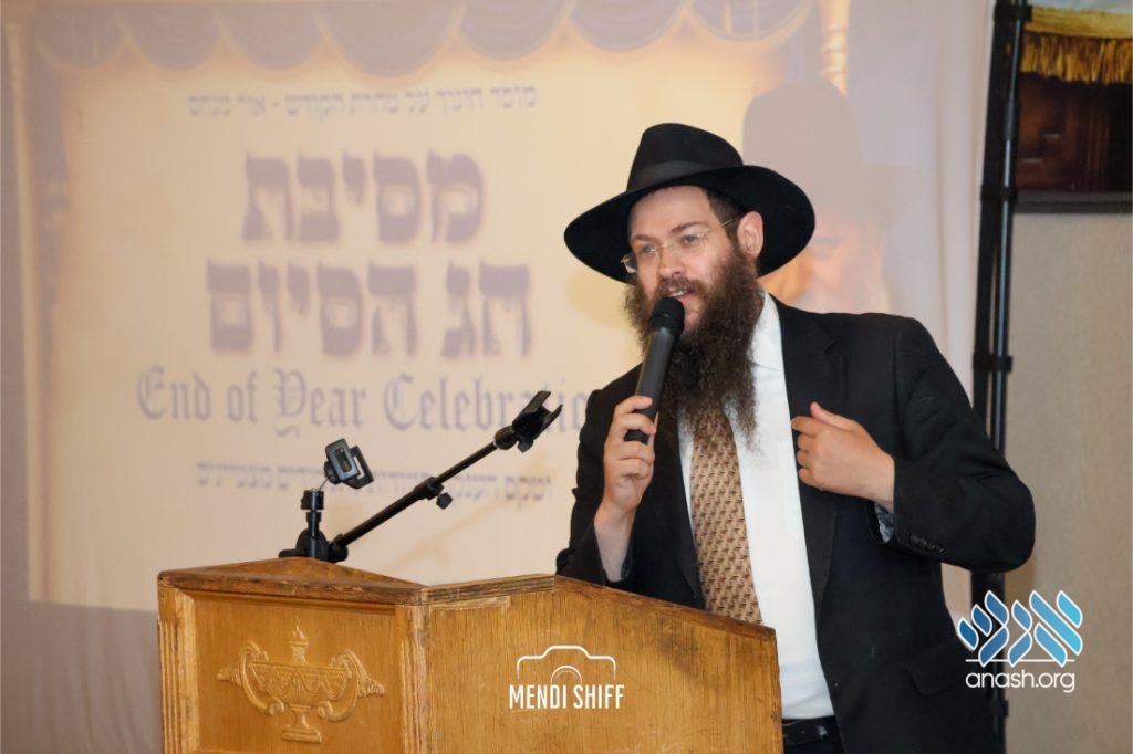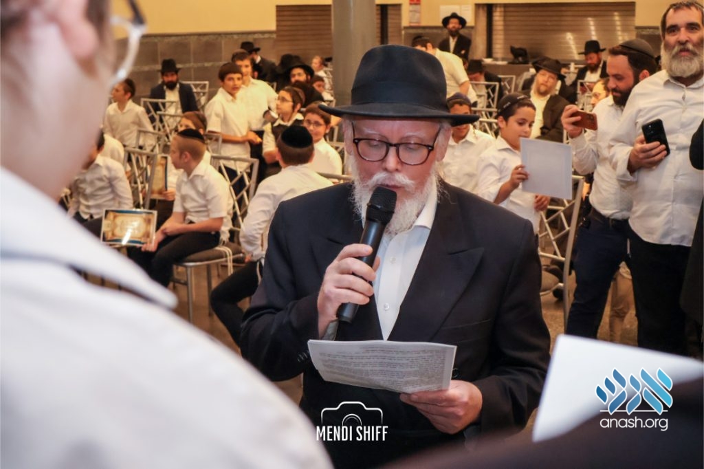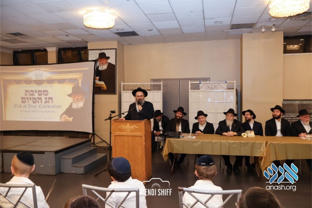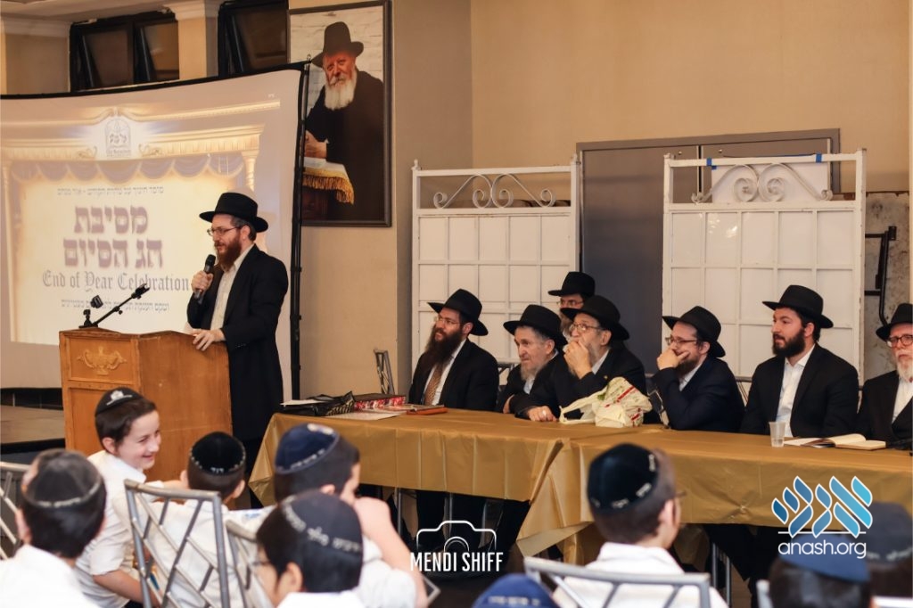 The crowd then rose to recite the Rebbe’s kapital, read by R’ Itche Mishulavin – representing the Cheder’s Vaad Haruchni, with special kavana for our brothers in Eretz Yisroel. Rabbi Zalman Goldstein – a lead hanhala member, read the Rebbe’s letter addressing the Chagigas Hashiyum. Rabbi Goldstein proceeded to summarize the Rebbe’s words on the avoda of summer break for the talmidim hamesaymim and for their parents.