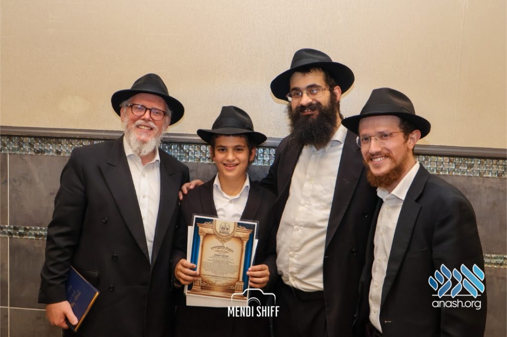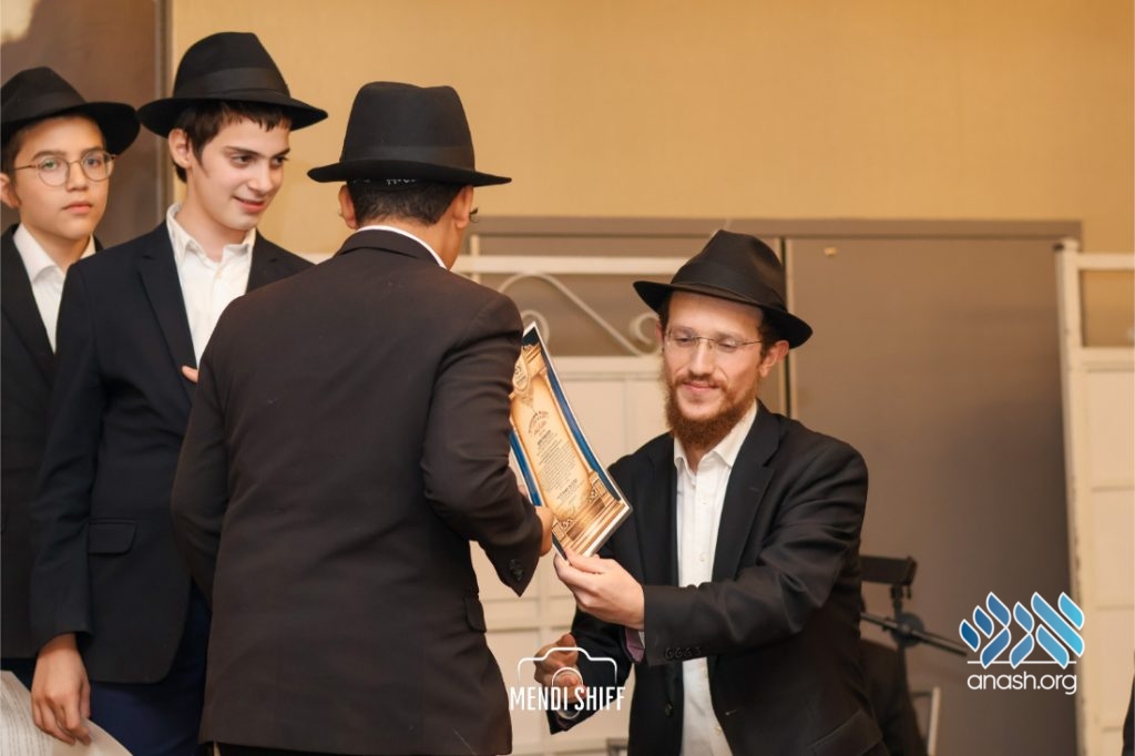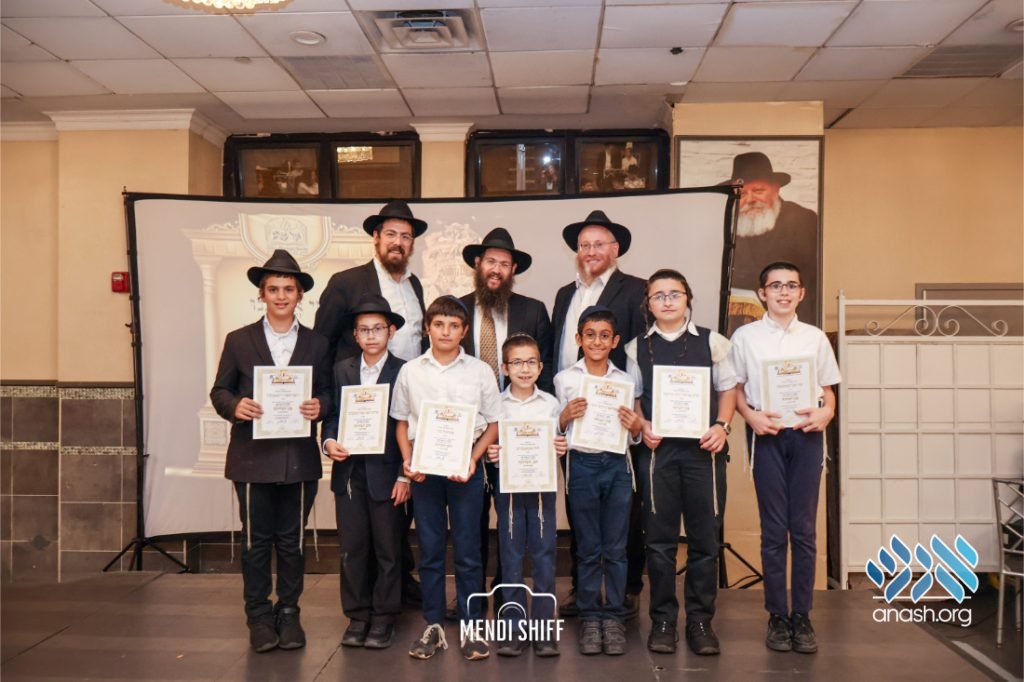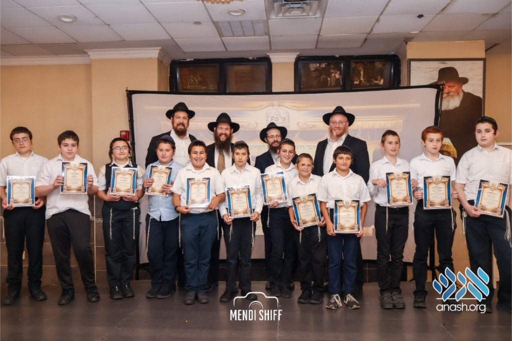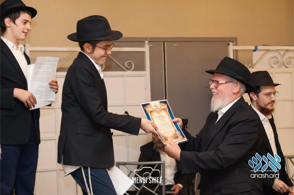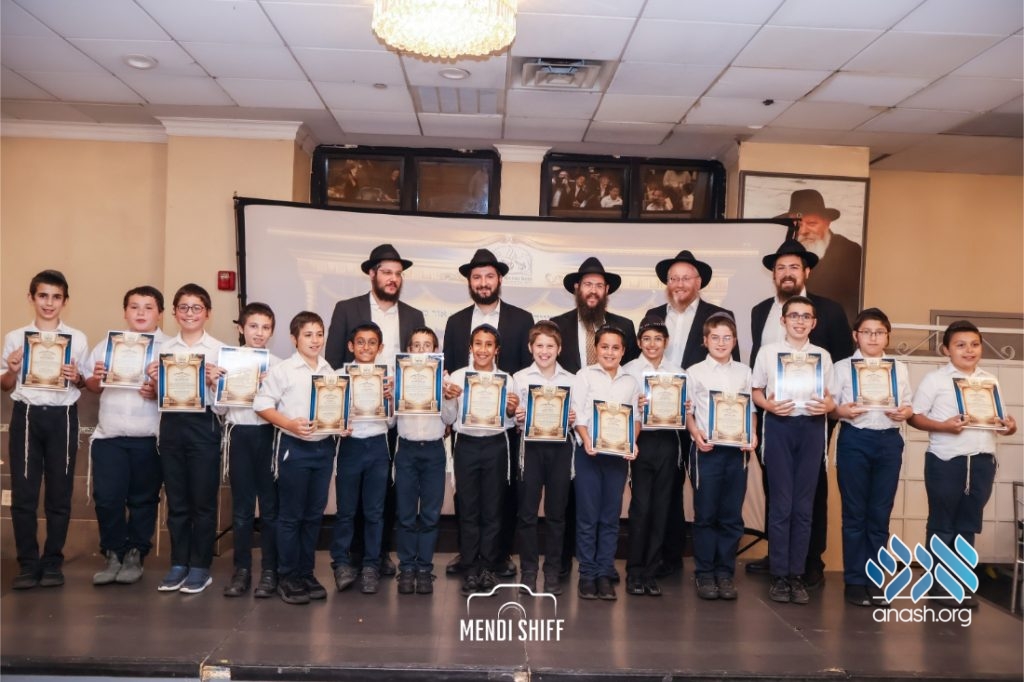 The vice principal, Rabbi Yossi Overlander, invited the highest-ranking Tzivos Hashem officers of the Cheder to lead us in the Twelve Pesukim. He also recognized great achievements of various talmidim in MBP with a special certificate for chassan and sgan hakita.