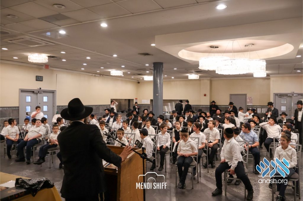 Rabbi Yosef Moshe Rubashkin, speaking on behalf of the class, expressed heartfelt gratitude to the Cheder, hanhala, and melamdim. Rabbi Yisroel Goldstein shared appreciation on behalf of all the parents.
