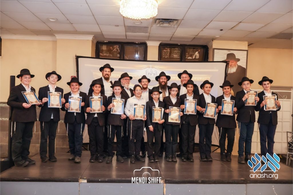 A highlight of the evening was a special tribute video by the graduating Kita Zayen, honoring Rabbi Yitzchok Fuchs, the longtime Pre-1 Alef melamed. The video recognized Fuchs’s indispensable role in laying the foundation of Torah, chassidishkeit, and hiskashrus for each talmid.