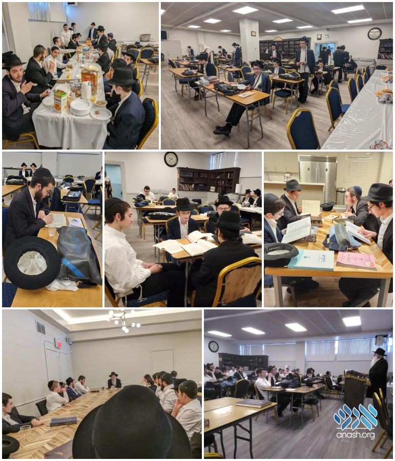 During Nissan, dozens of Montreal bochurim gathered every day at the Chai Center and at Yagdil Torah for Chassidus, davening, breakfast, Nigleh, and special shiurim from Montreal maggidei shiurim.