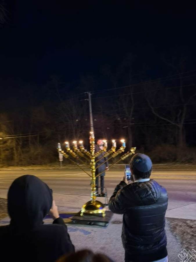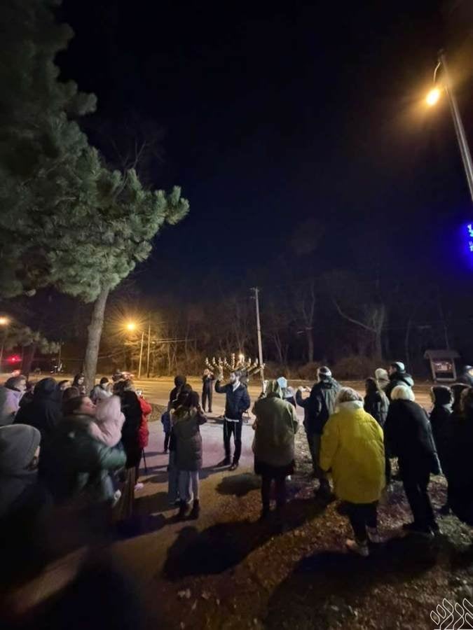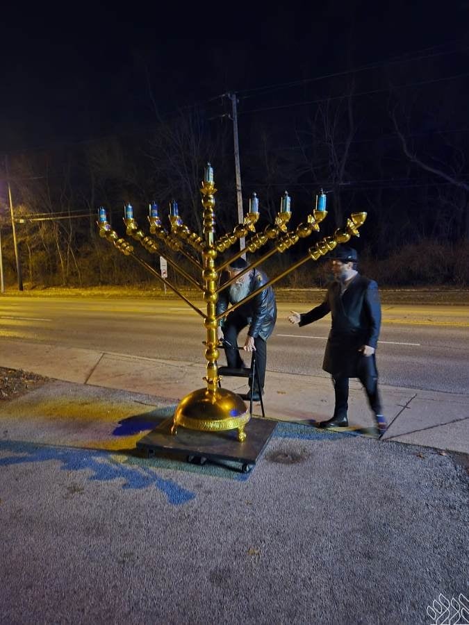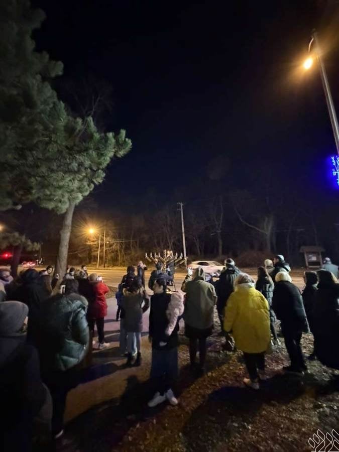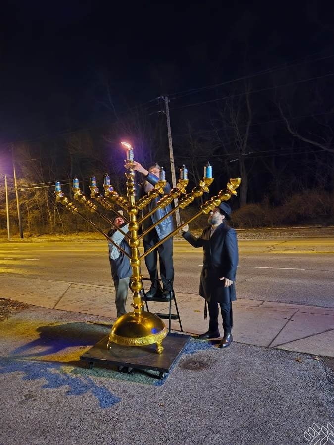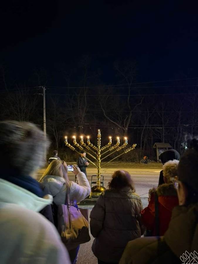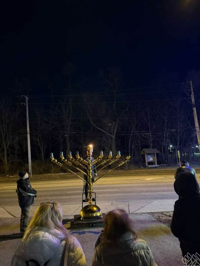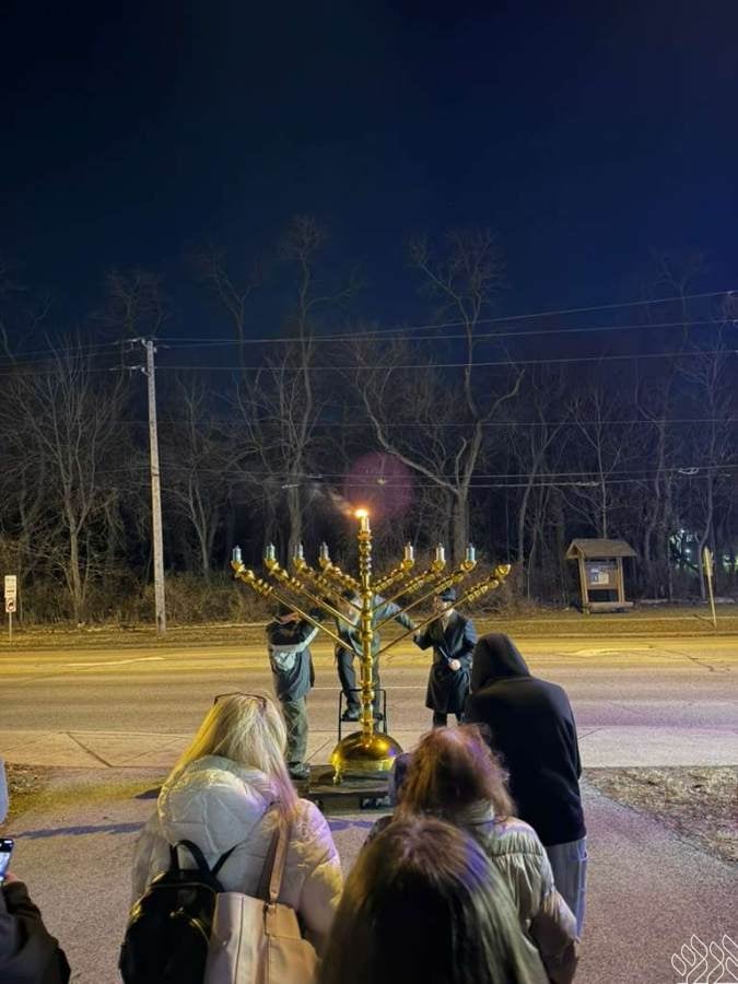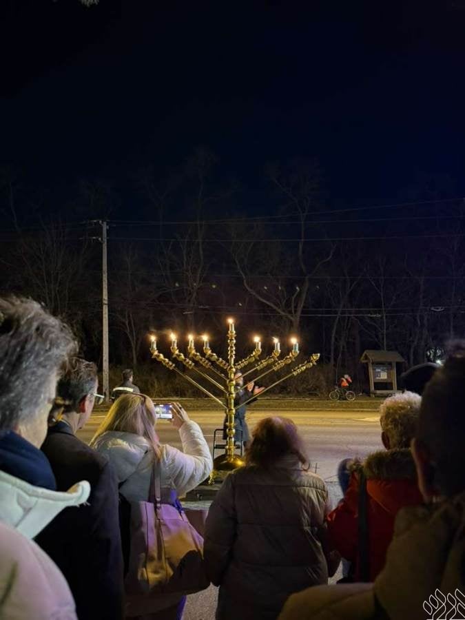 The menorah was unveiled at a Motzoei Shabbos event on the main street near the Chabad House in Northwest Indiana. Hundreds of community members gathered to witness the lighting, many visibly inspired by the sight.