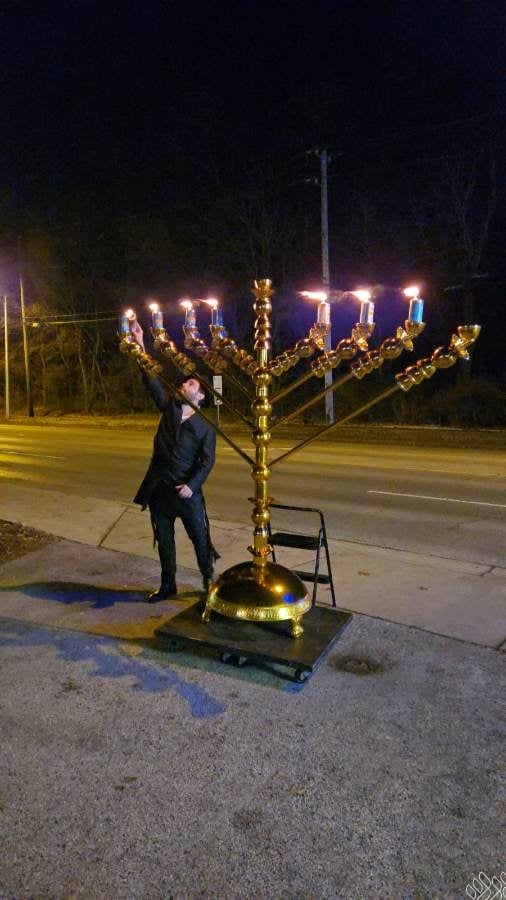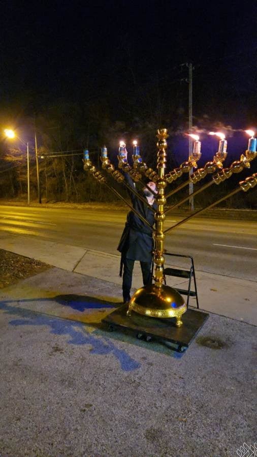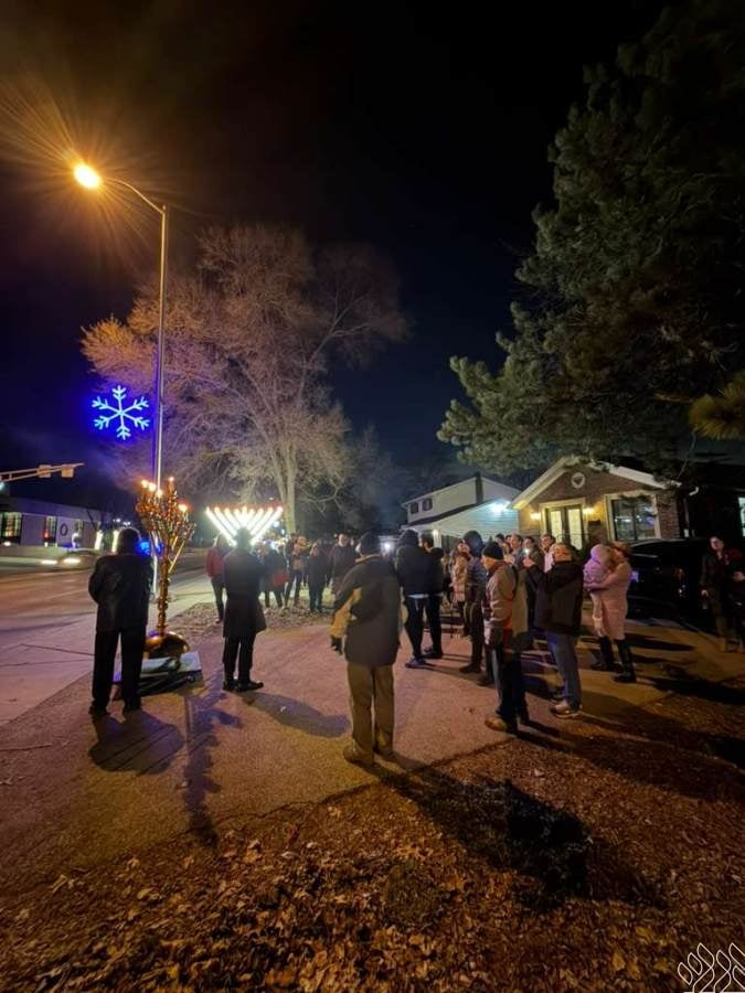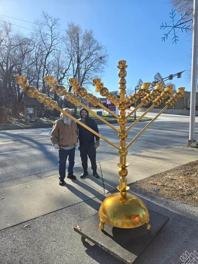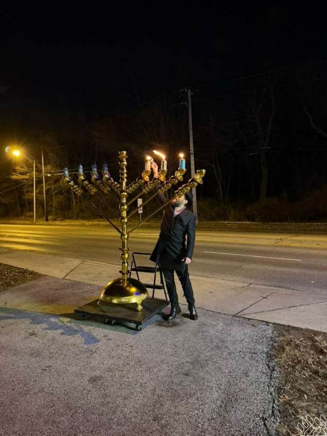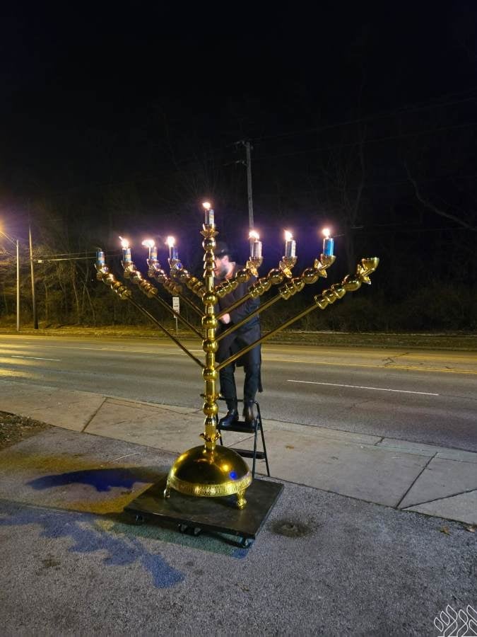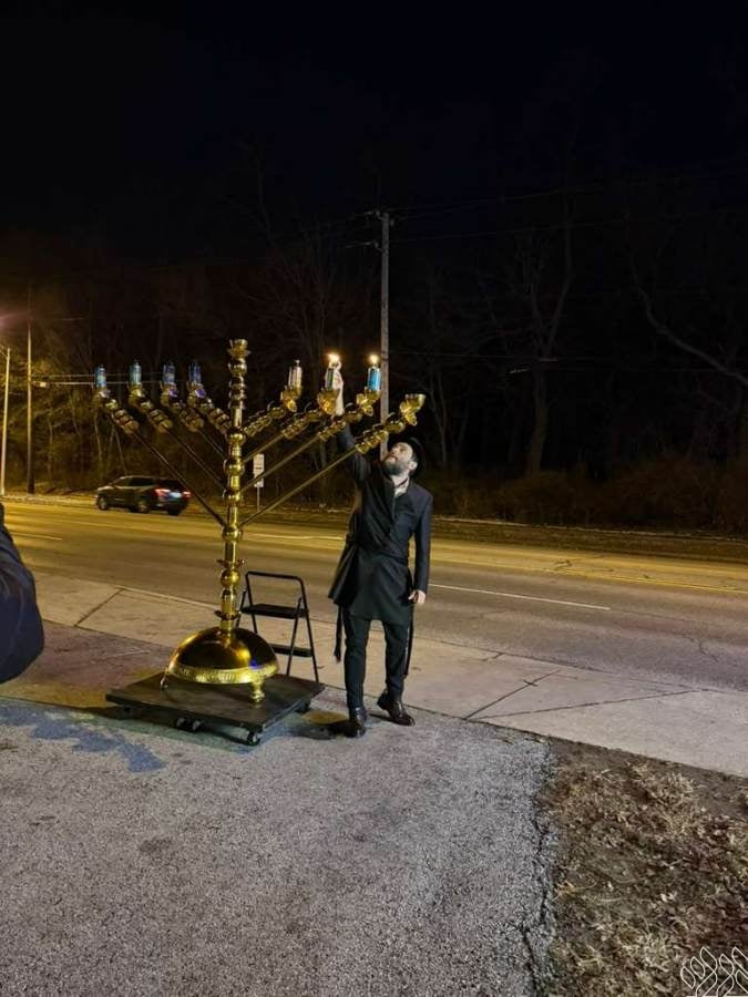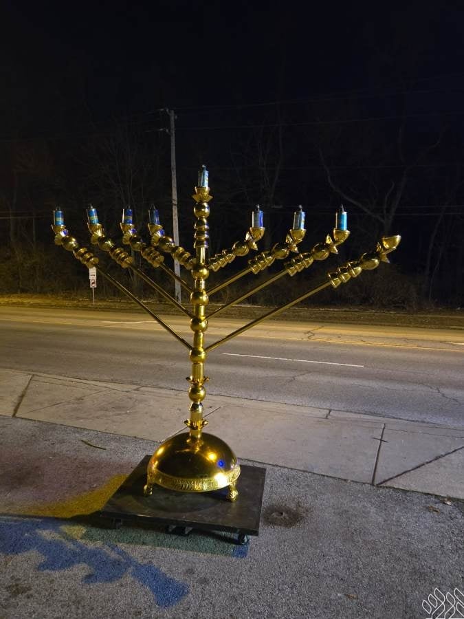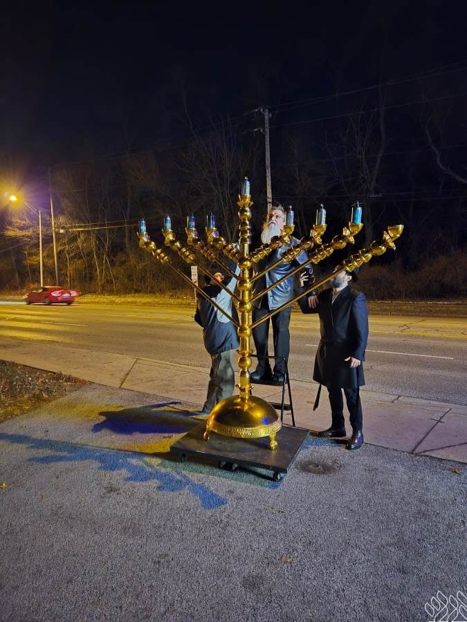 The menorah was unveiled at a Motzoei Shabbos event on the main street near the Chabad House in Northwest Indiana. Hundreds of community members gathered to witness the lighting, many visibly inspired by the sight.