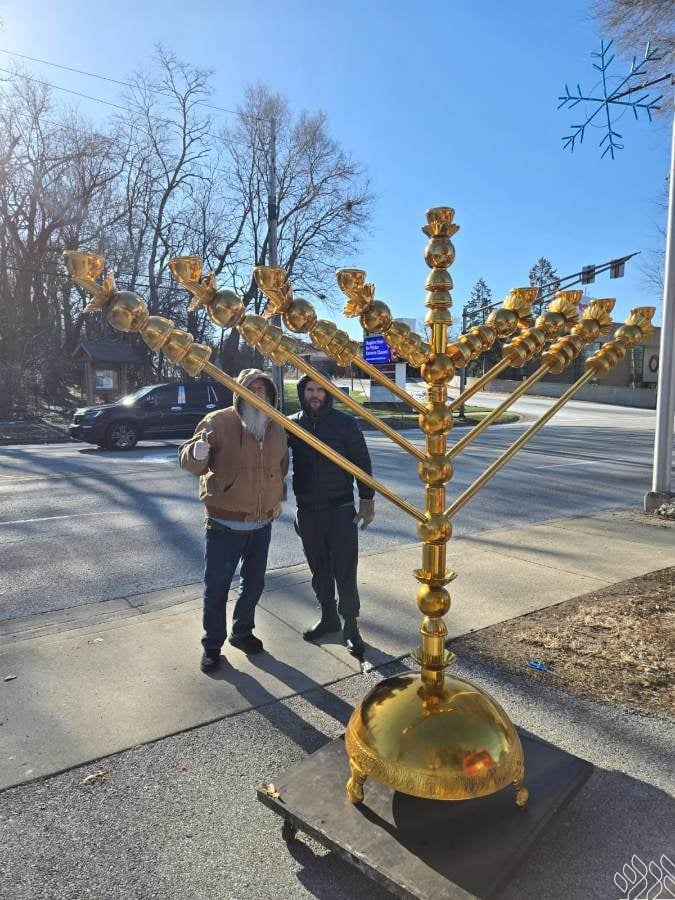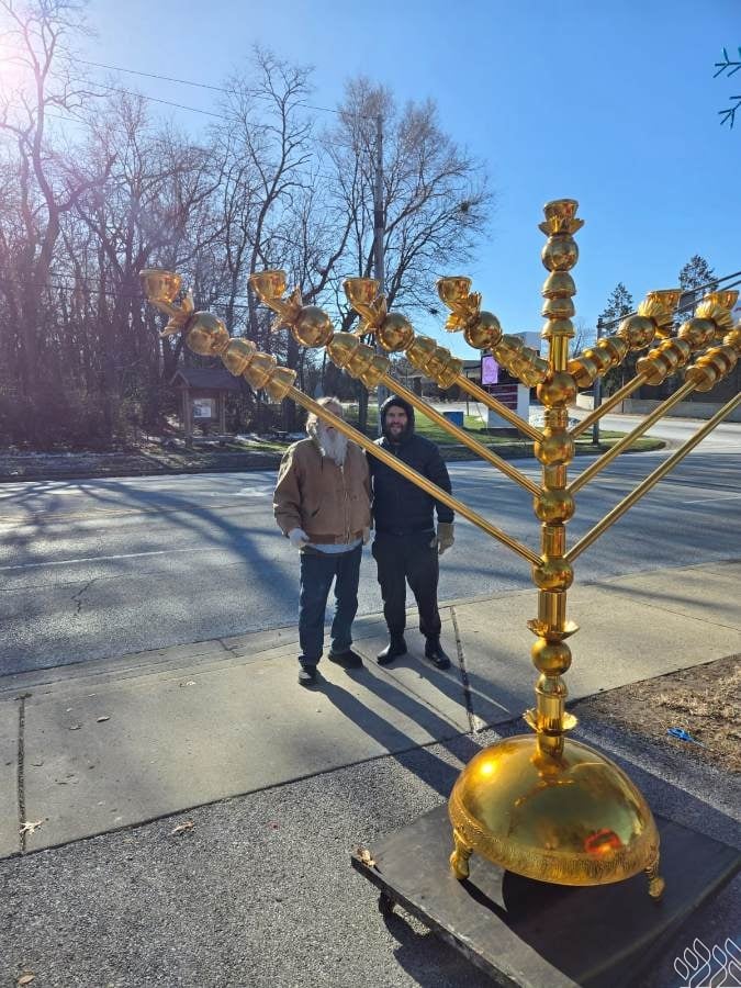 Two weeks before Chanukah, the menorah was finally completed and arrived in the U.S. The result was a stunning work of art: each piece handmade, detailed, and plated in gold paint, weighing 200 pounds, standing seven feet tall, and nine feet wide – exactly like the menorah in 770.