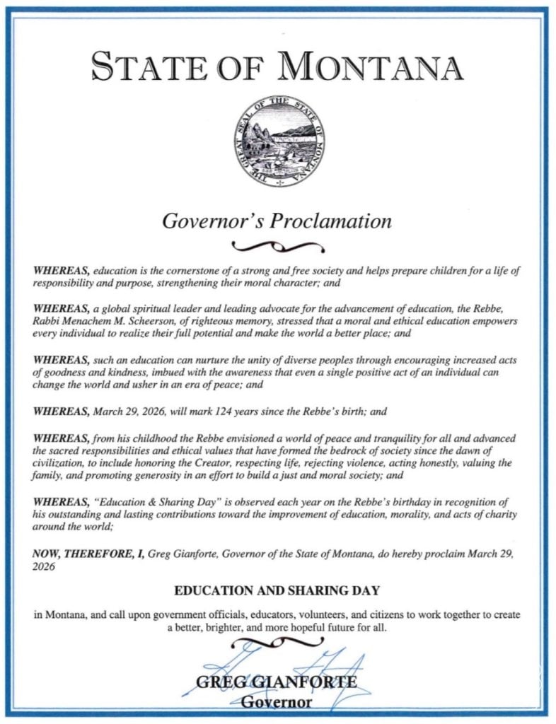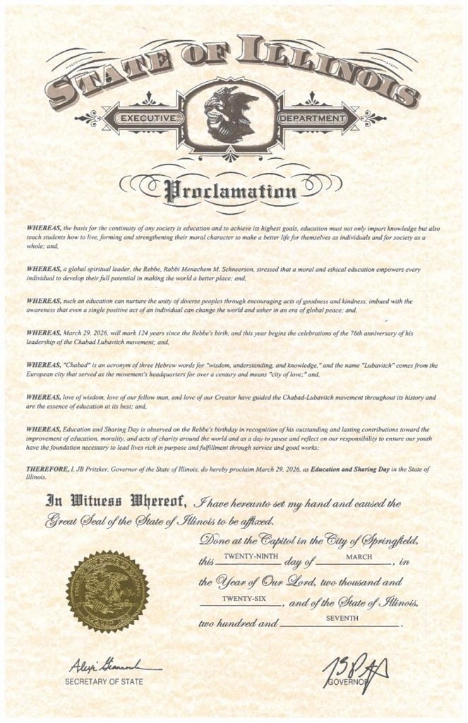 Forty years later, on the eve of 11 Nisan 5778 (2018), with Chabad emissaries now posted in all 50 states, Education and Sharing Day was recognized in every state with formal proclamations from every governor. This project, spearheaded by Rabbi Levi Shemtov, Executive Vice President of American Friends of Lubavitch (Chabad), was entirely unprecedented.