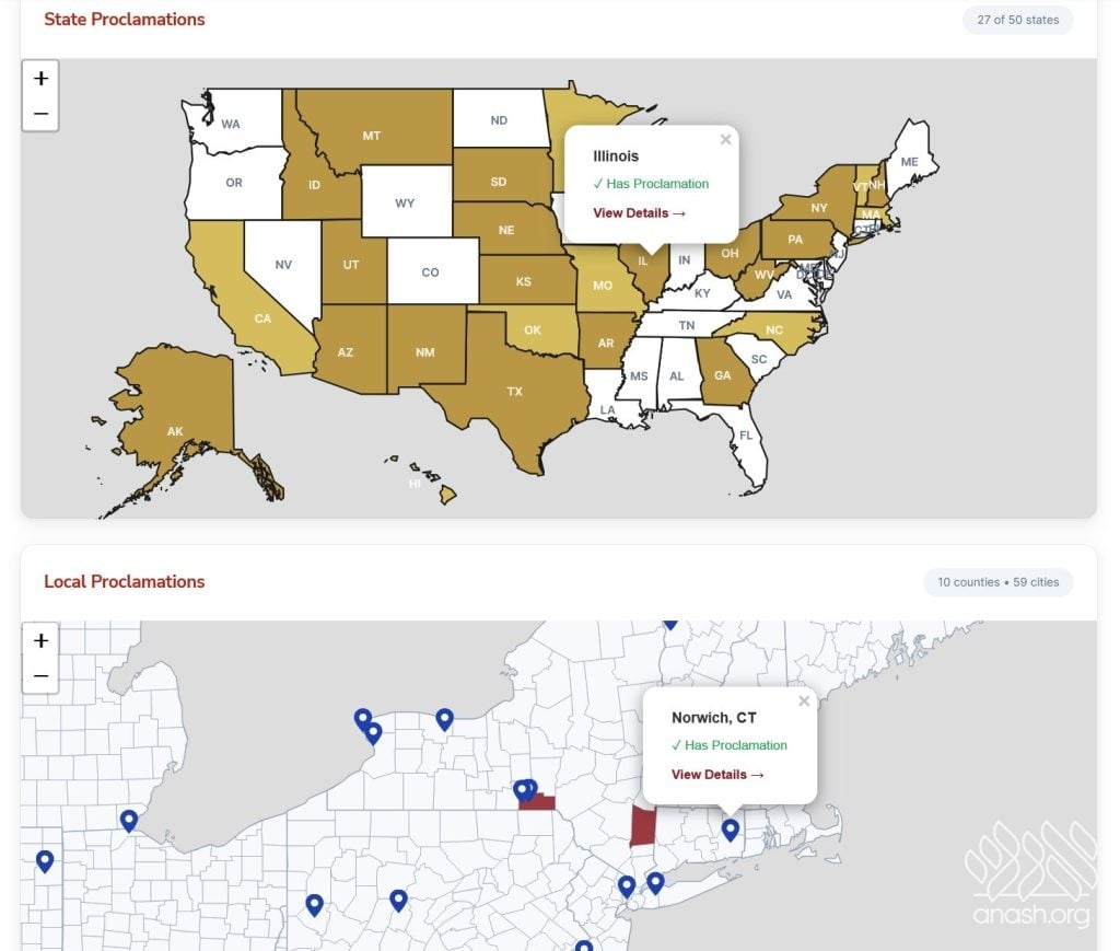 With government officials across all 50 states issuing proclamations to mark the Rebbe’s birthday as “Education Day,” a new website has been launched with interactive maps and a counter to see the Rebbe’s reach being honored around the world.