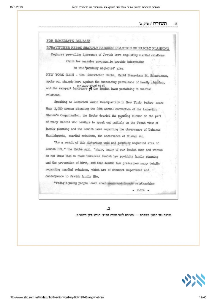 In the interim, the Rebbe spoke and wrote countless times about the importance of Taharas Hamishpacha. And, as he charged, thousands of classes and review sessions have been held on this critical topic.