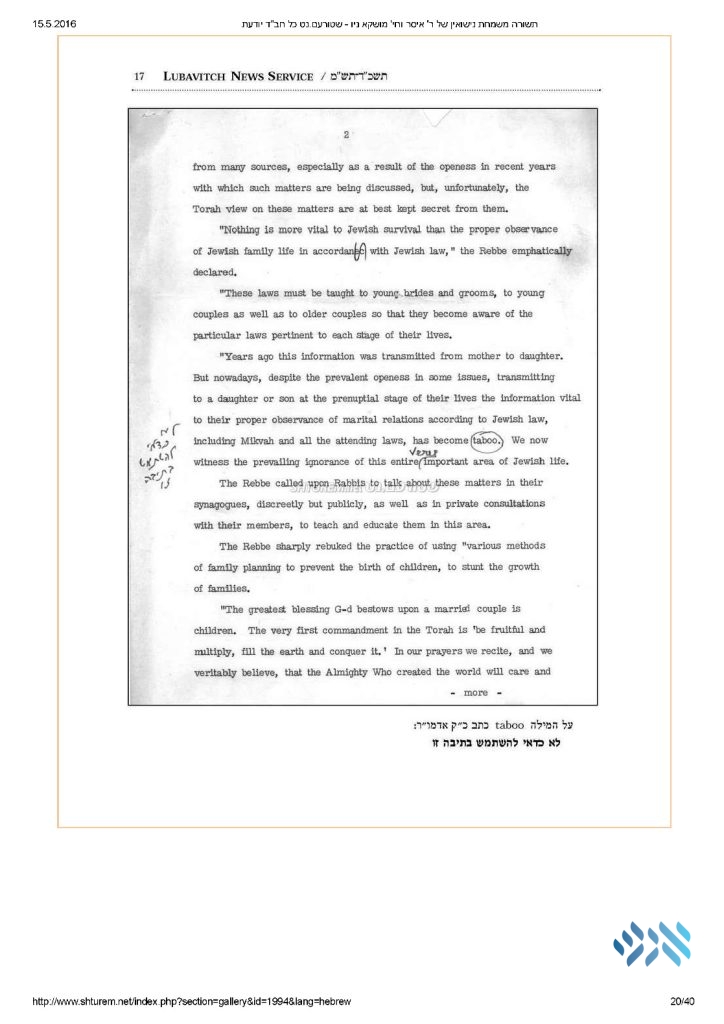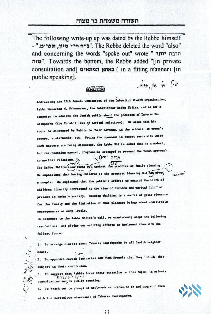 Click here to see where the Rebbe crossed out “high school” as a proper age to teach Taharas Hamishpacha.