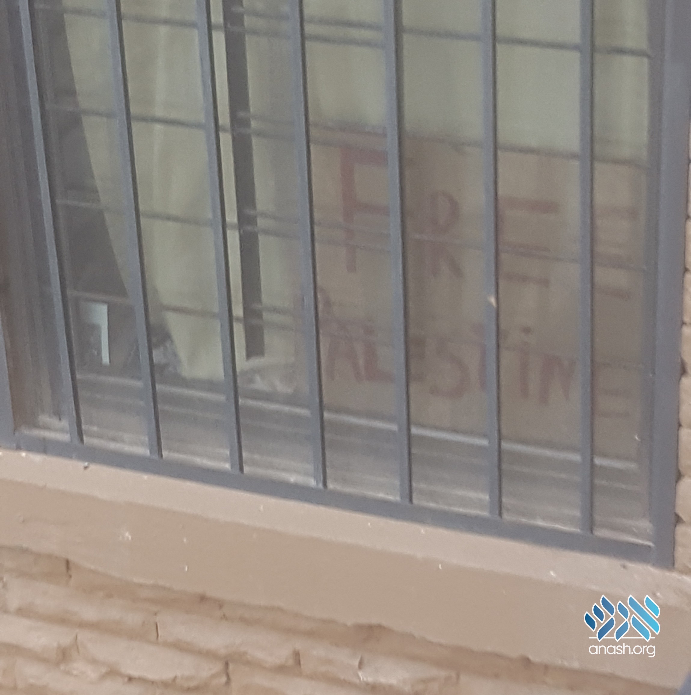 Pictured here is a scene captured today, Tuesday. One can clearly see a handwritten sign proclaiming “Free Palestine.” This photo was not taken in a non-Jewish neighborhood, but right here in Crown Heights. It was taken in the vicinity of S. John’s and Albany.