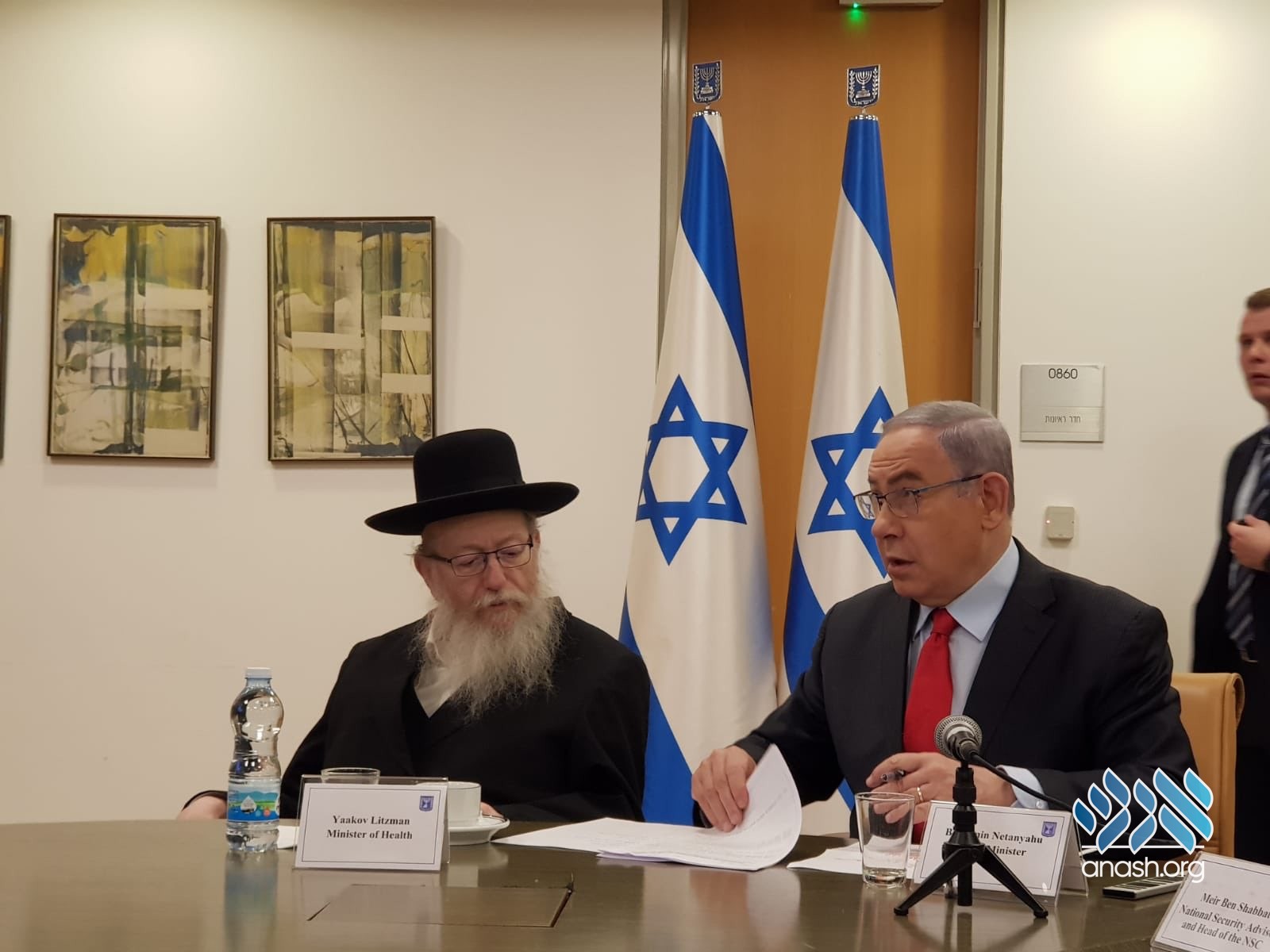 Netanyahu and Health Minister Rabbi Yaakov Litzman held a video conference with European leaders on the growing world health crisis.