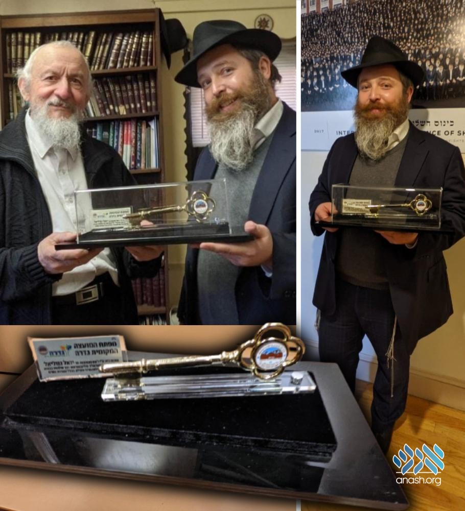 Continuing in the tradition of cities from across the world, the Gedera Local Council honored the Rebbe by sending a symbolic key of the local council to the Rebbe’s library with shliach Rabbi Chanoch Gechtman.