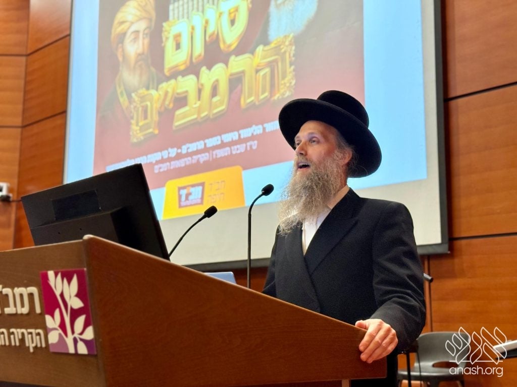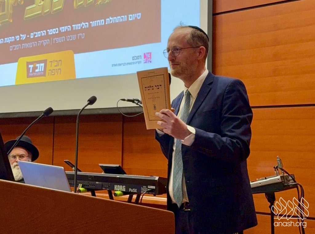 Hundreds of residents of Haifa and the surrounding area gathered for the central celebration of the completion of the 45th daily study cycle of the Rambam across all three tracks, and the beginning of the 46th cycle, in accordance with the Rebbe’s request that everyone participate in the Siyum HaRambam.