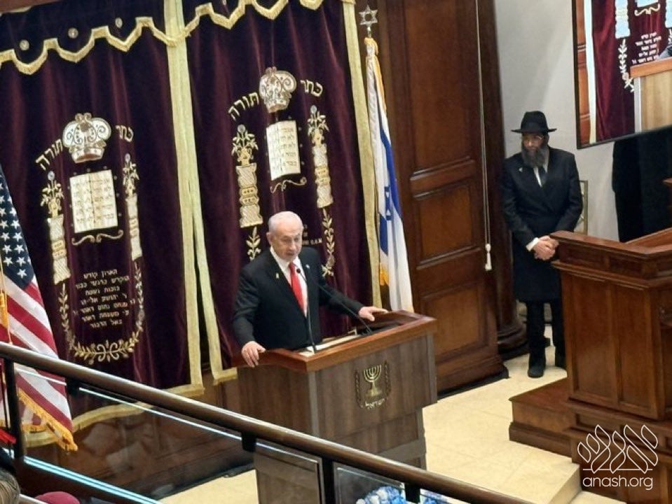 Netanyahu was welcomed by the community’s shliach and rabbi, Rabbi Shneur Zalman Lipskar, who continues the work of his father, the late shliach Rabbi Sholom Ber Lipskar. Rabbi Lipskar reminded the Prime Minister of his momentous meeting with the Rebbe while serving as an ambassador to the UN, and what the Rebbe had told him.