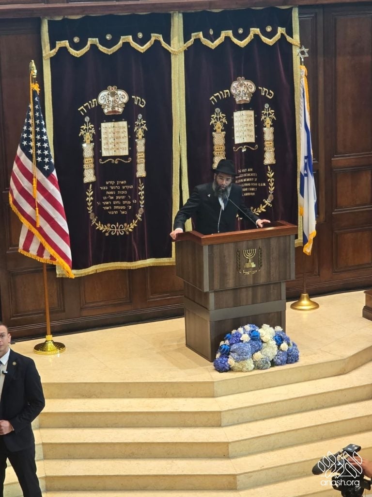 The Prime Minister described the visit to the Chabad shul as a spiritual point of strength during a difficult period. He focused his message on what he called the pillars that protect the Jewish future, saying that “unity, strength, and resolve” are essential. He connected that theme to Jewish history, including the Holocaust, and recognized a Holocaust survivor in attendance. Netanyahu repeated the message he said he shared with him, “Never again,” adding, “Never again is now,” and explaining that Jewish strength was built so that enemies cannot succeed.