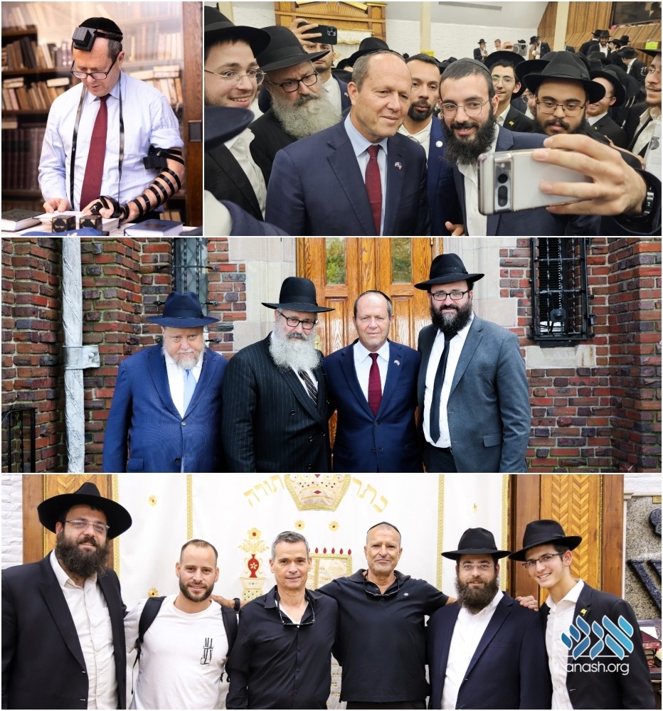 He then went down to the large zal to be shown around. Being one of the most influential individuals in Israeli politics today, he was instantly recognized by many visiting Israelis, who snapped selfies with him and greeted him.