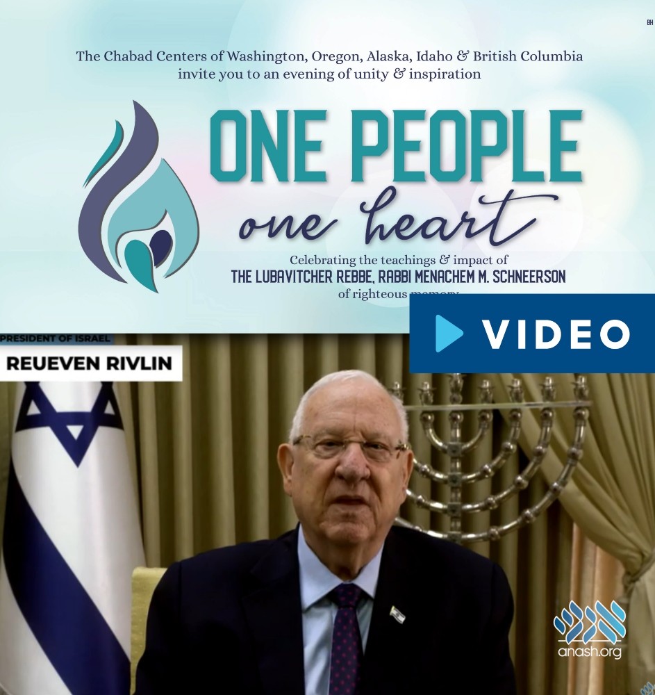 President Ruvi Rivlin of Israel recorded a special tribute to the Rebbe ahead of Gimmel Tammuz, for the annual virtual event gathering hundreds of Jews from the Pacific Northwest to learn from the Rebbe’s life and teachings.