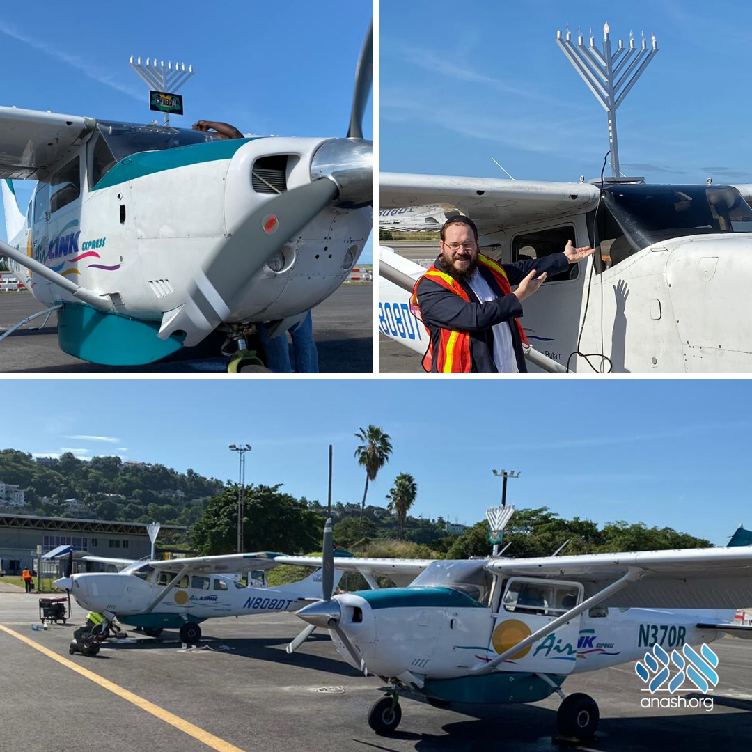 Chabad Shluchim to Jamaica Rabbi Yankel and Mushkee Raskin organized the first ever Airplane Menorah Parade.