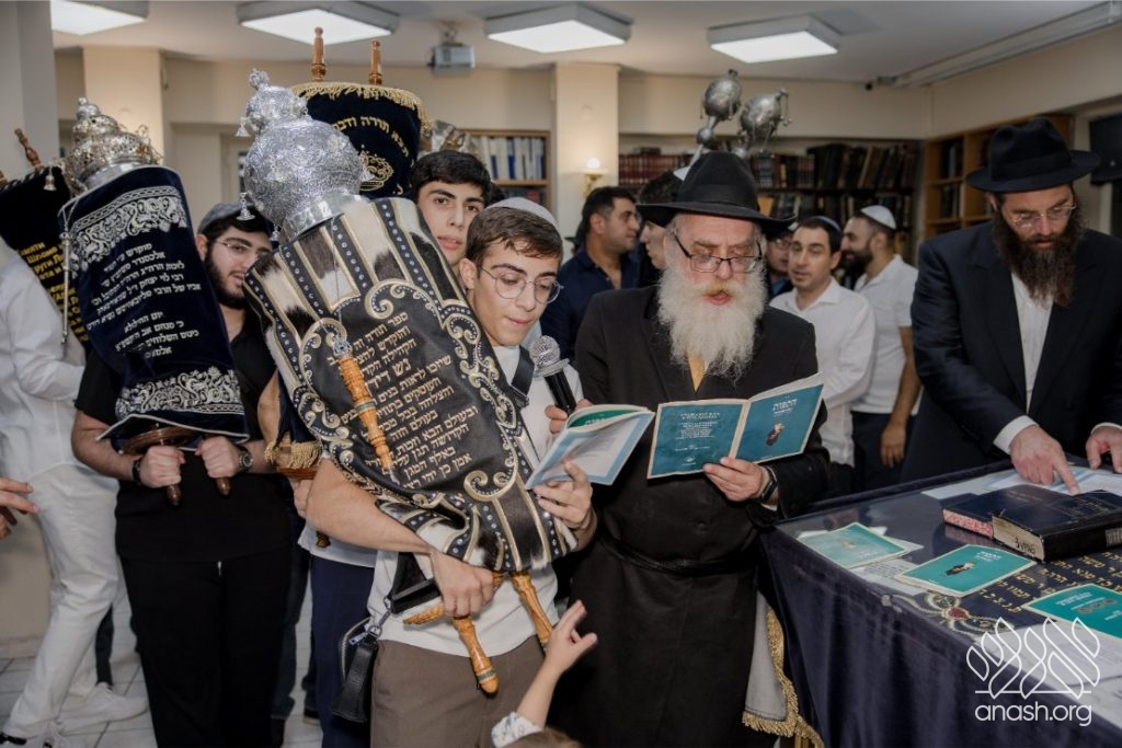 With fiery dancing, the crowd escorted the Torah scroll around the bimah eight times, with one of the hakafos dedicated to the children of “Tzivos Hashem.” The pesukim of “Atah Horeisa” rang out as voices joined in unity, echoing the pride of generations past and the promise of future continuity.