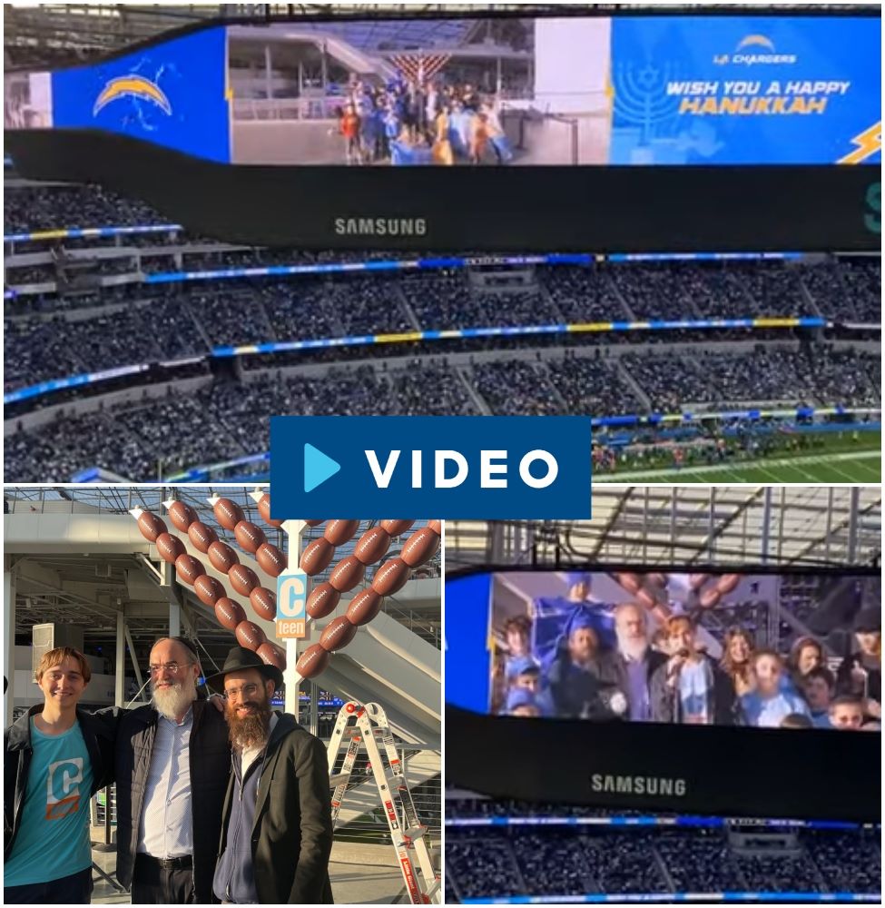 On Sunday, December 18th, nearly 70k thousand fans attending the Chargers-Titans game took part in the first-ever Menorah Lighting held at Sofi Stadium. Hosted by CTeen International and Chabad of Redondo Beach, it was a powerful demonstration of Pirsumei Nissa and Jewish pride.