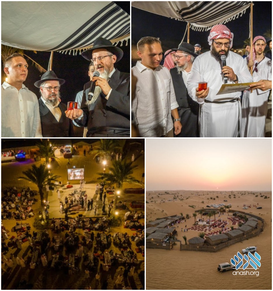 Chief Rabbi of Russia Berel Lazar officiated at a wedding in the heart of the Dubai desert. The young couple, alumni of Chabad mosdos in Russia, celebrated with 600 young Jews who were on a trip to Dubai.