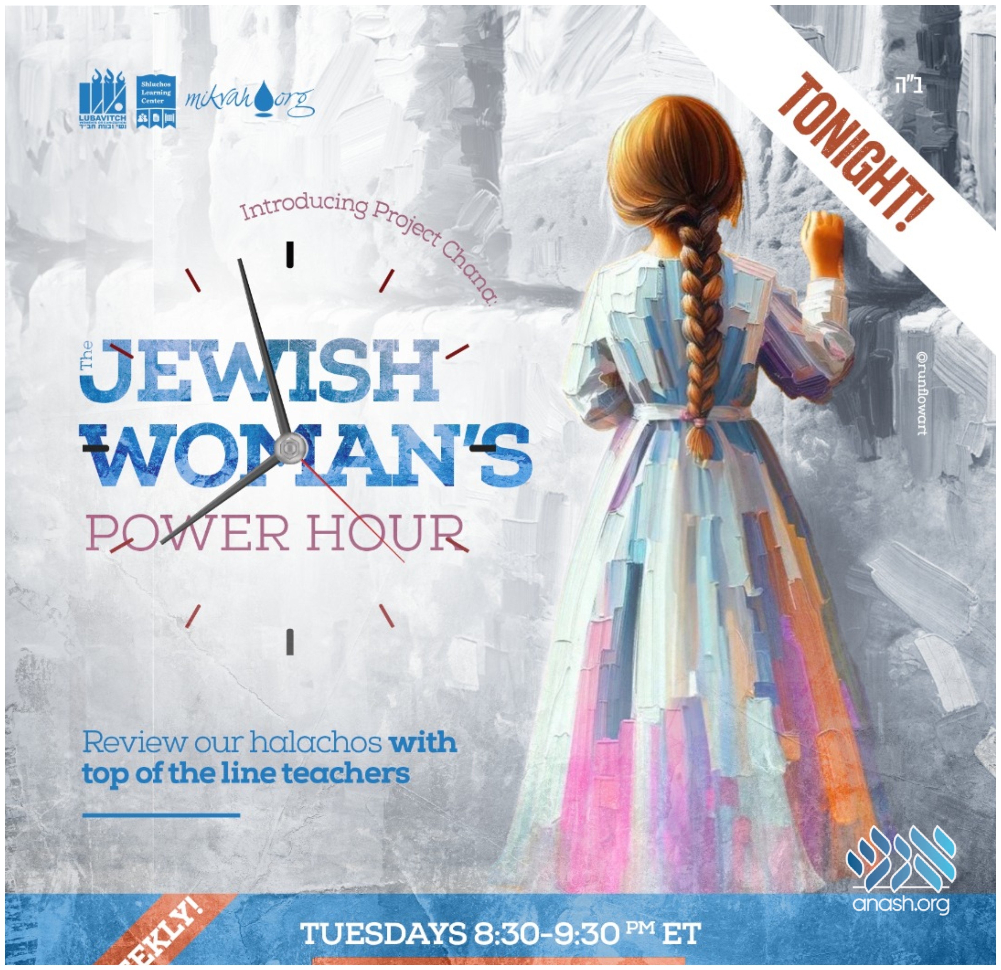 Live from 8:30-9:30, join women worldwide in learning three lessons in halacha packed into one compact hour of study.