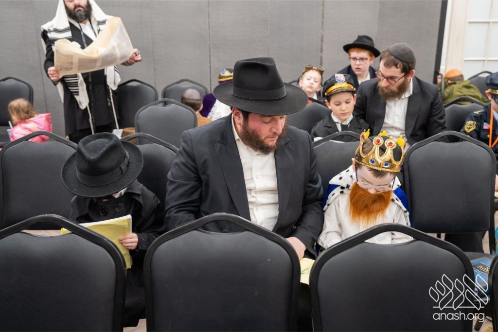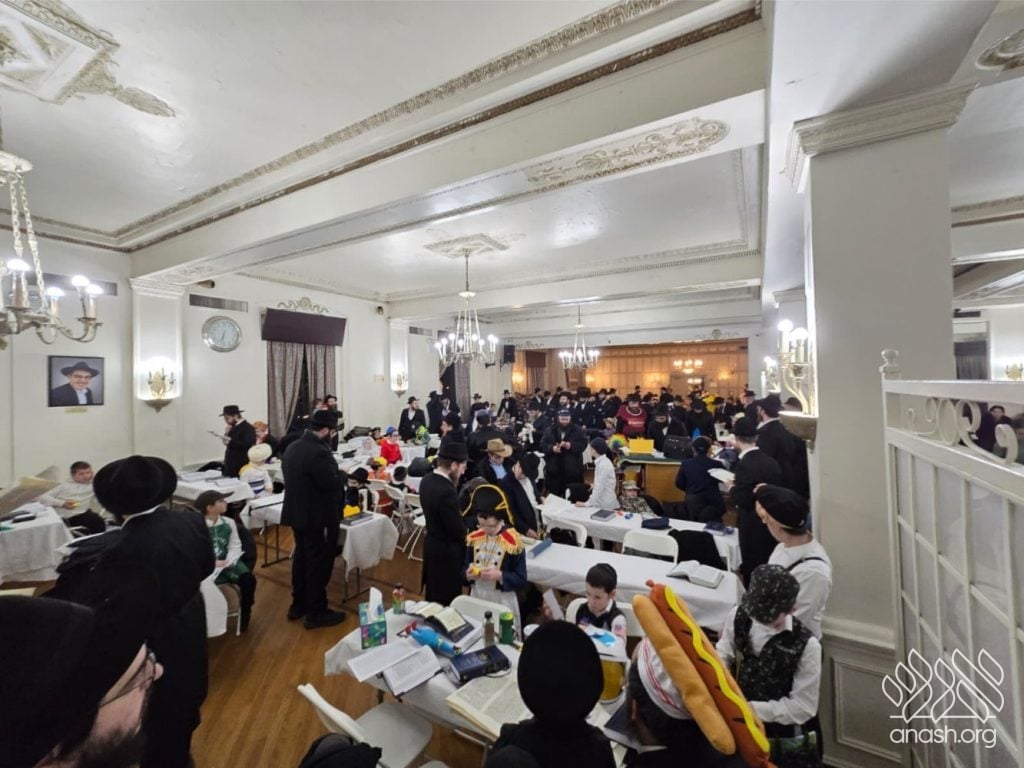 On Purim night, more than 300 men, women, and children packed the Heichal Shmuel for a beautiful and lively program run by Oholei Torah Shabbos Minyan under the leadership of Rabbi Mendel Levin. The evening included Megillah reading along with refreshments, crafts for the children, music, and a festive break-fast and l’chaim.