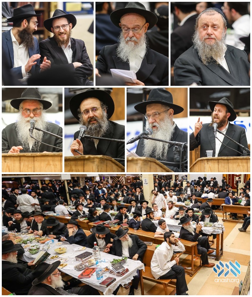 The farbrengen was addressed by Harav Yosef Yeshaya Braun, member of Crown Heights Beis Din, Rabbi Yeshaya Cohen, Head Shliach and Chief Rabbi of Kazakhstan, Rabbi Yosef Mishulovin, shliach in California, Rabbi Nachman Schapiro, mashpia in Beis Medrash Oholei Torah, Rabbi Elyashiv Kaplun, mashpia in Kiryat Gat, and Israeli Journalist Mati Tuchfeld. The MC was Rabbi Yankel Chazan.