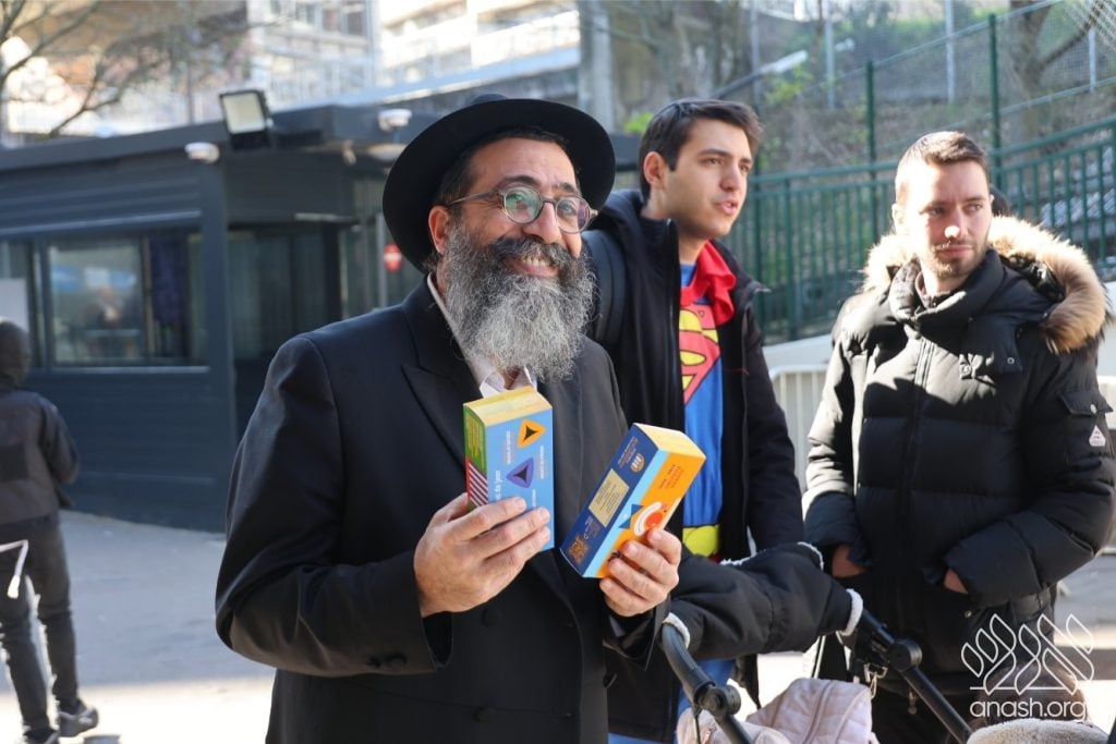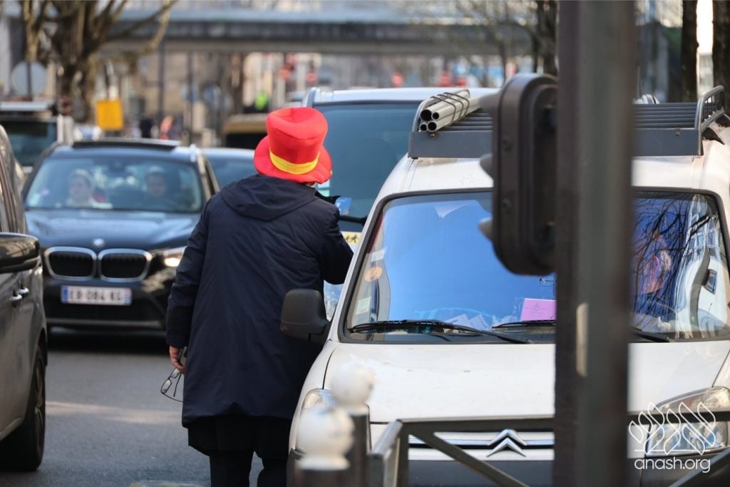The festive atmosphere of Purim across the French capital was captured by Chabad photographer Mordechai Lubecki.