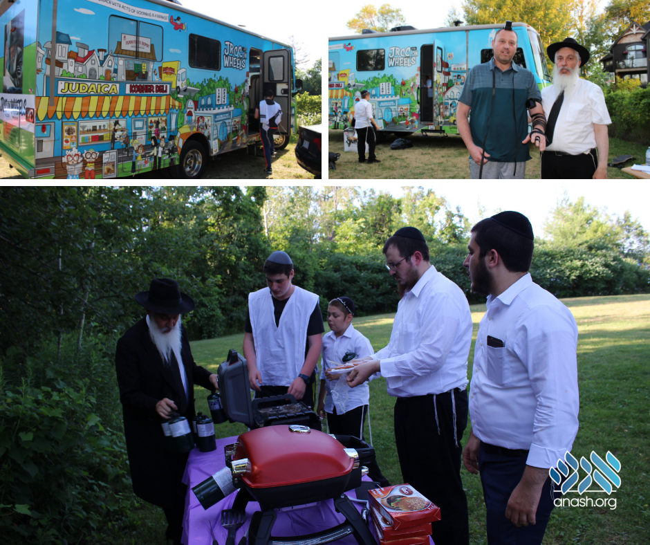 Last month, a contingent of JRCC rabbis took a road trip using the JRCC on Wheels mobile community center to visit Jewish Russian communities in Simcoe County, about 1 hour drive north of Toronto. 150 people of all ages joined the three BBQ’s and get-togethers that took place in the cities of Barrie, Innisfil and Bradford.