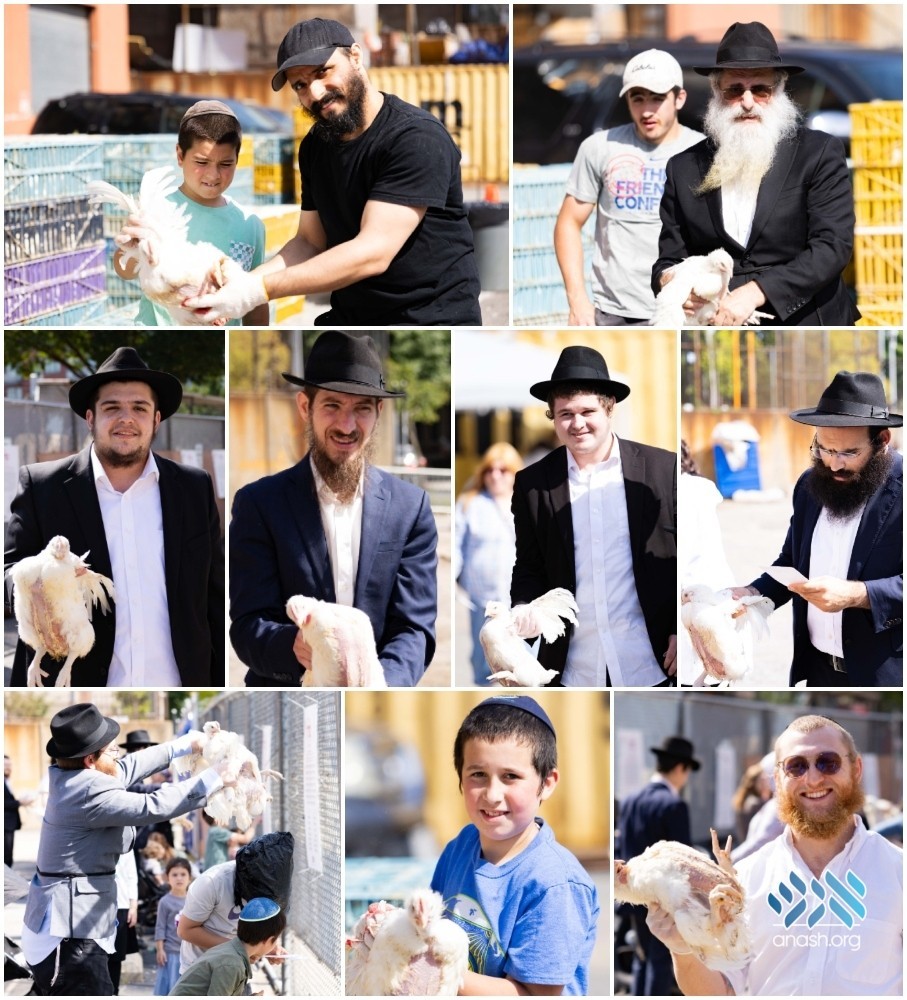 Crown Heights families performed the minhag of Kaparos on Thursday, ahead of Yom Kippur. The kaparos was organized by NCFJE and subsidized by donors.